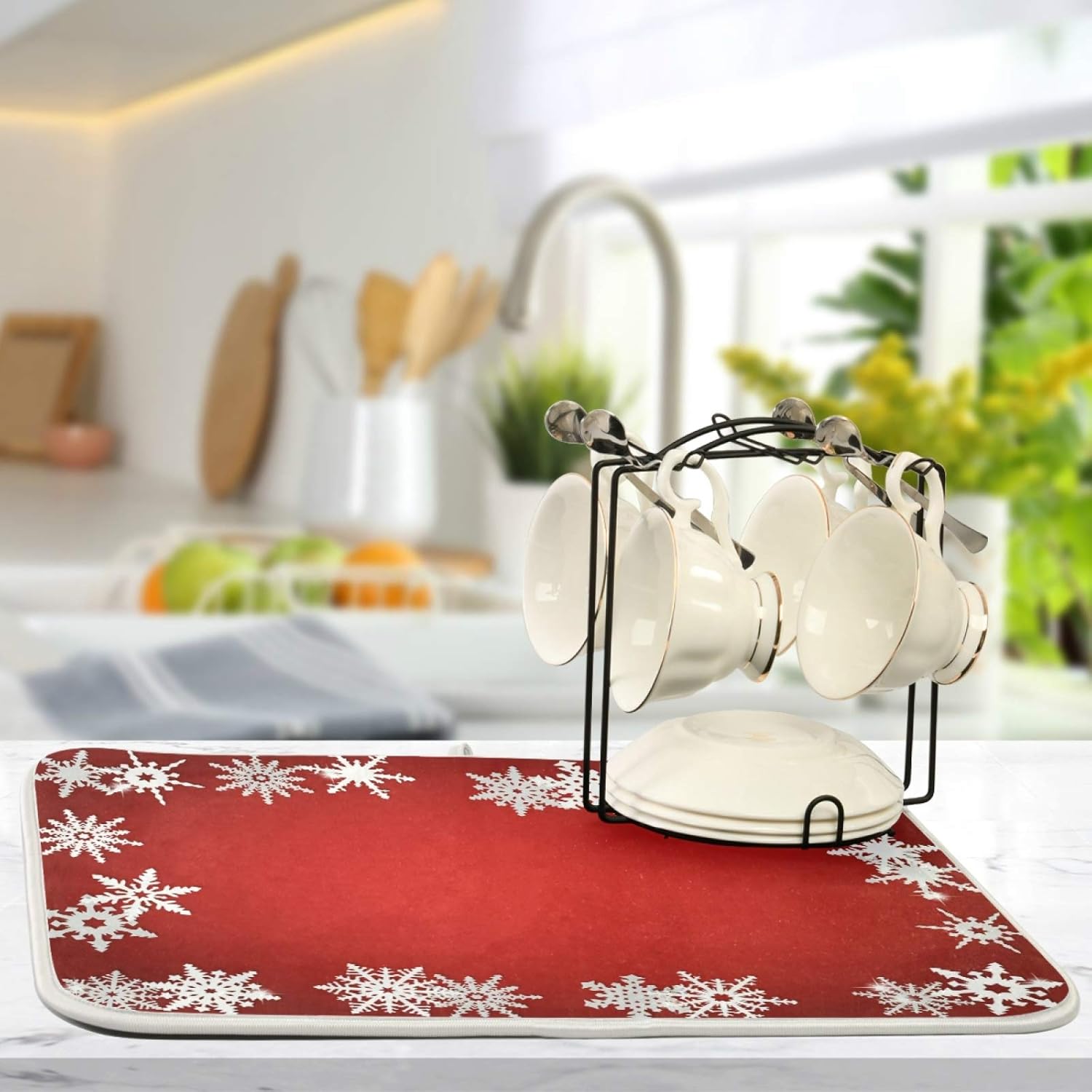 Super Absorbent Dish Drying Mat, Microfiber Fast-Drying Dish Mat, 24" x 18", Kitchen Dish Drying Pad, Watercolor Cute (Christmas Snowflake Abstract)