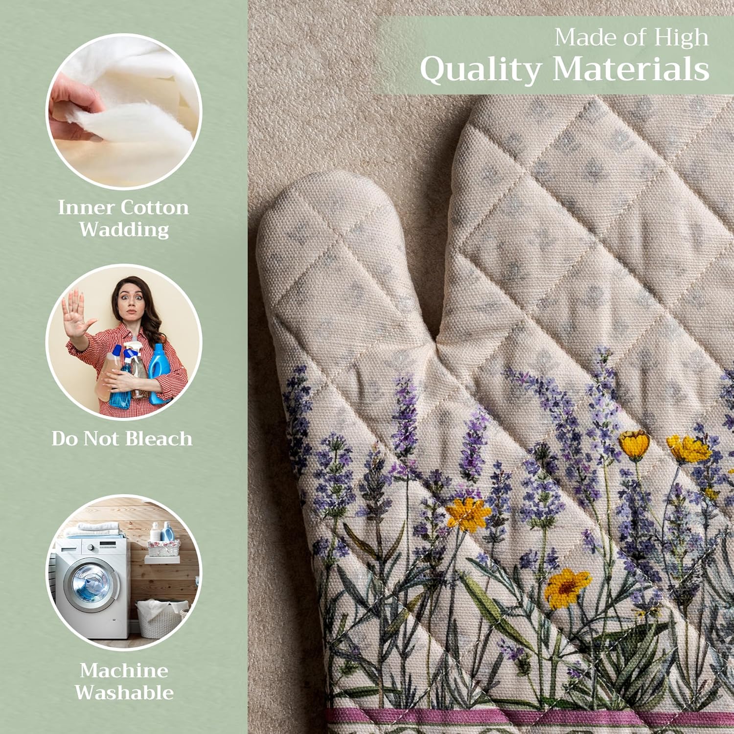- 100% Quilted cotton: Crafted from thick, durable quilted cotton, this heat resistant oven mitt provides a soft feel, safe handling, and lasting performance. A must-have kitchen accessory for everyday cooking, roasting, or baking tasks
