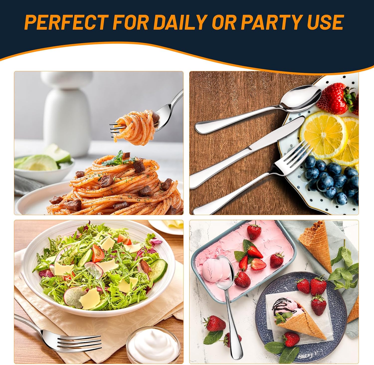 - ★STURDY SILVERWARE SET: High-quality stainless steel material, rust proof and corrosion resistant, the sturdy clearance silverware sets can serve you well for many years.