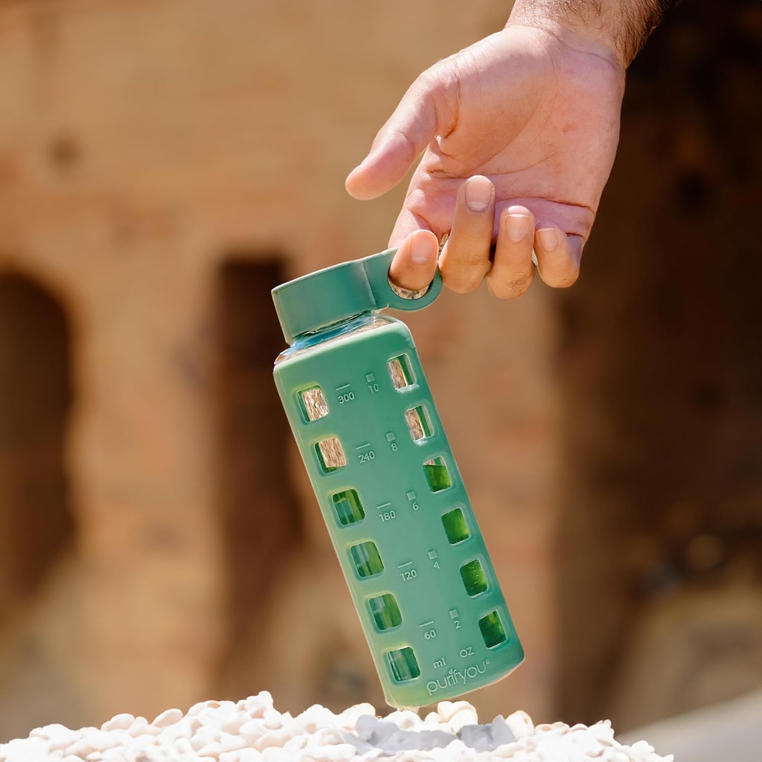 - Track & Improve Daily Hydration: Stay on top of your water goals with purifyou glass water bottles featuring clear, easy-to-read time and volume markings; ideal for workouts, travel, the office, or relaxing at home