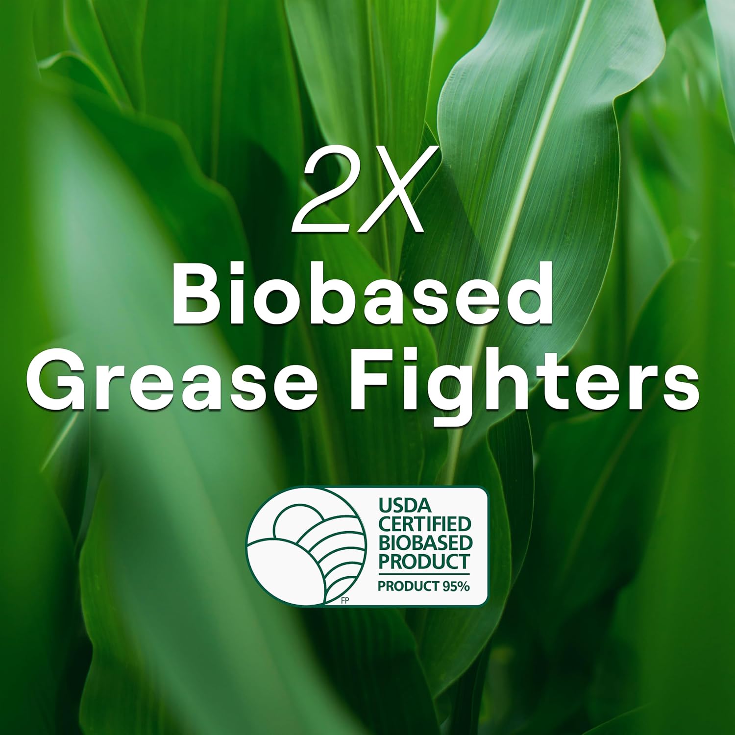 - Plant-based formula liquid soap fights grease and powers through tough, dried-on food