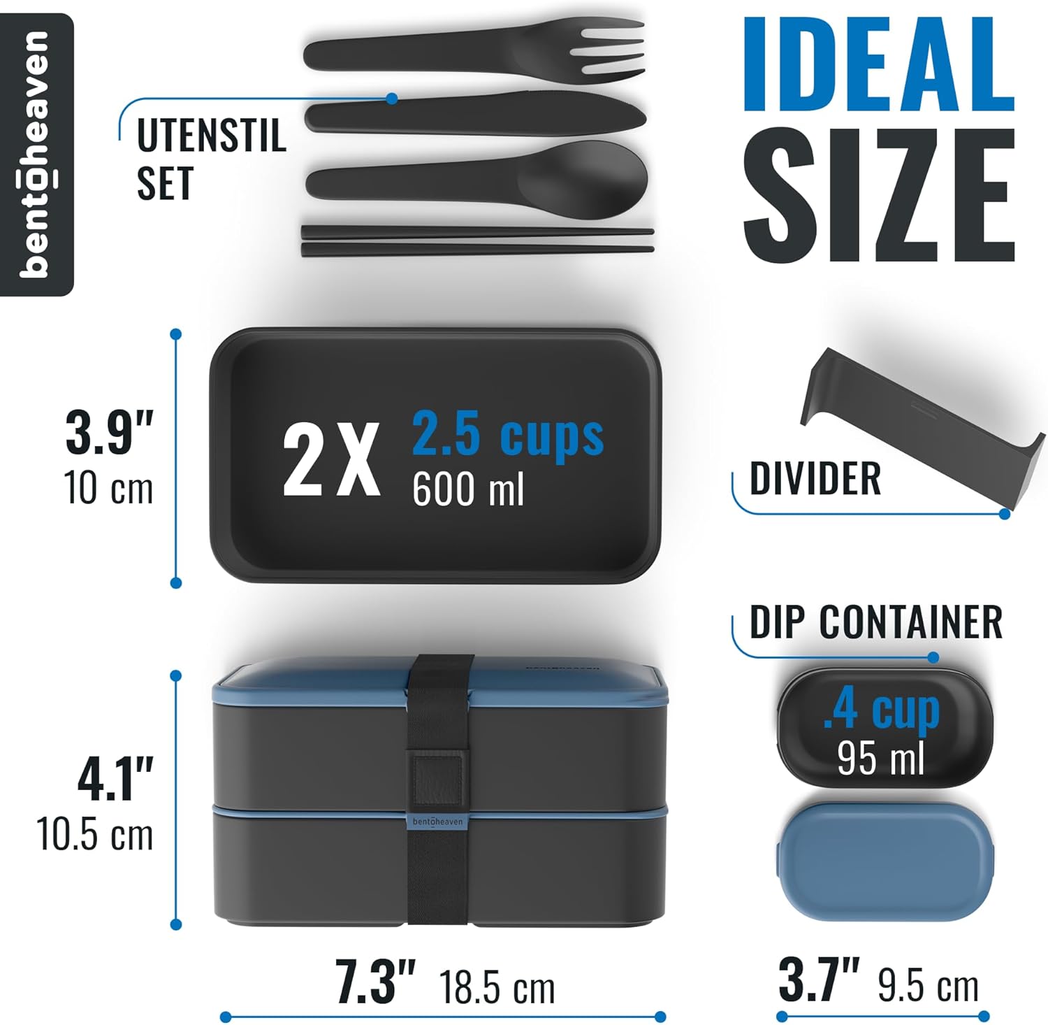 Bentoheaven Premium Bento Box Adult Lunch Box with Compartments for Women & Men, Set of Utensil & Chopsticks & Dip Container, Cute Japanese Kids Bento Lunch Box, Microwavable (Steel My Heart)