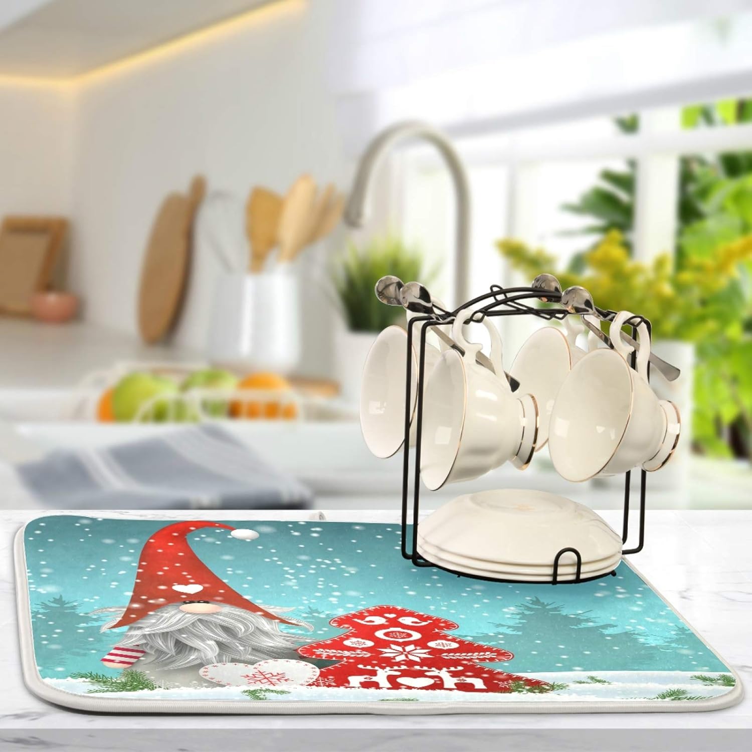 Super Absorbent Dish Drying Mat, Microfiber Fast-Drying Dish Mat, 24" x 18", Kitchen Dish Drying Pad, Watercolor Cute Christmas Gnome…