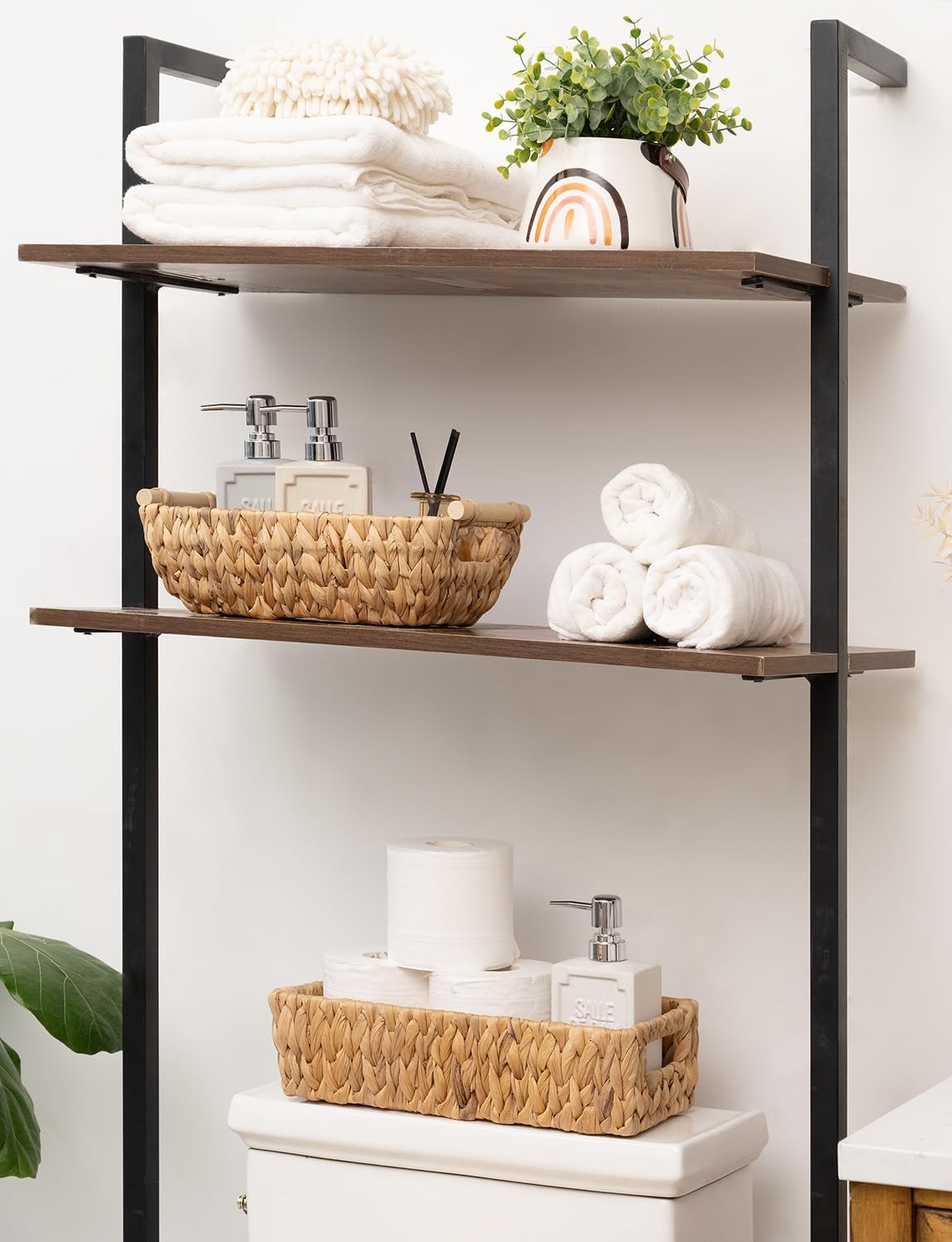 StorageWorks Hand-Woven Small Wicker Baskets, Water Hyacinth Storage Baskets with Wooden Handles, 2-Pack