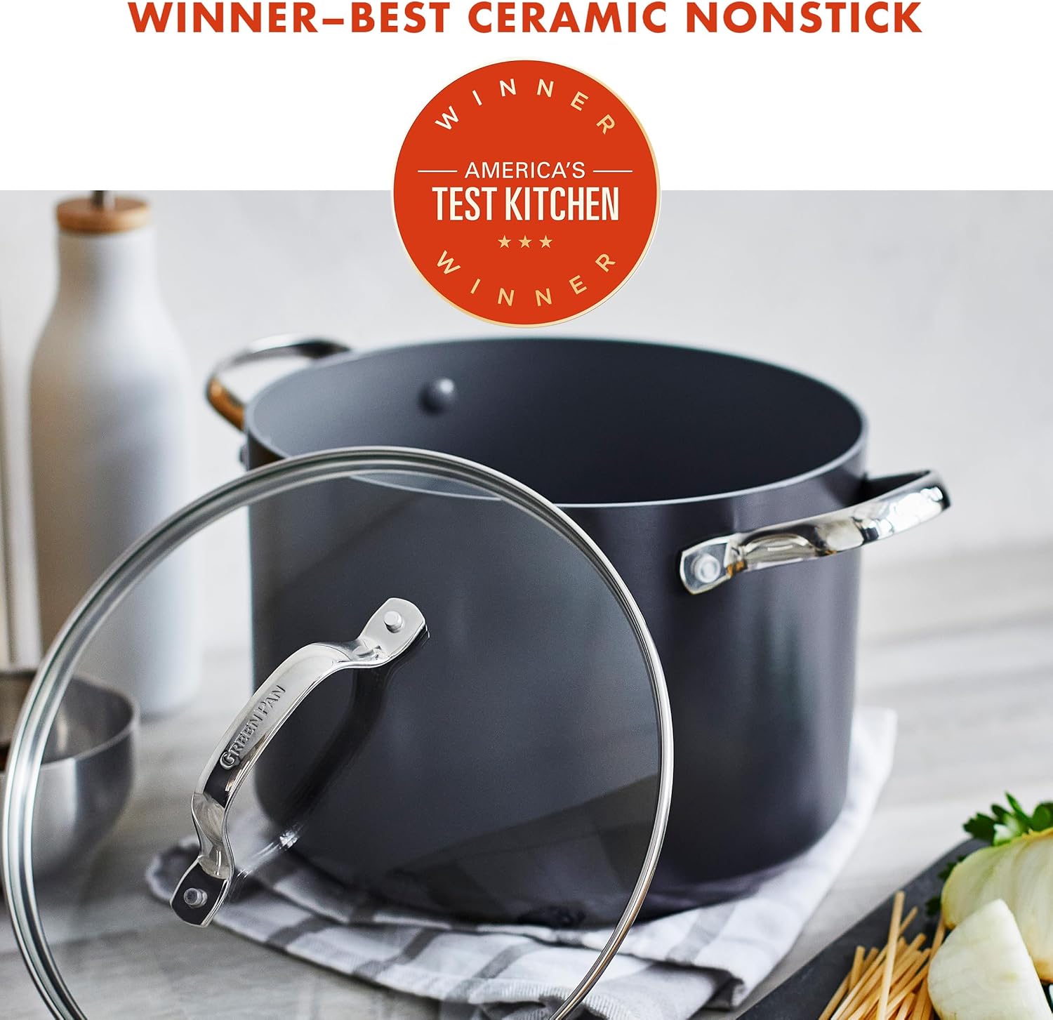 GreenPan Valencia Pro Hard Anodized Healthy Ceramic Nonstick 8QT Stock Pot with Lid, PFAS-Free, Induction, Dishwasher Safe, Oven Safe, Gray