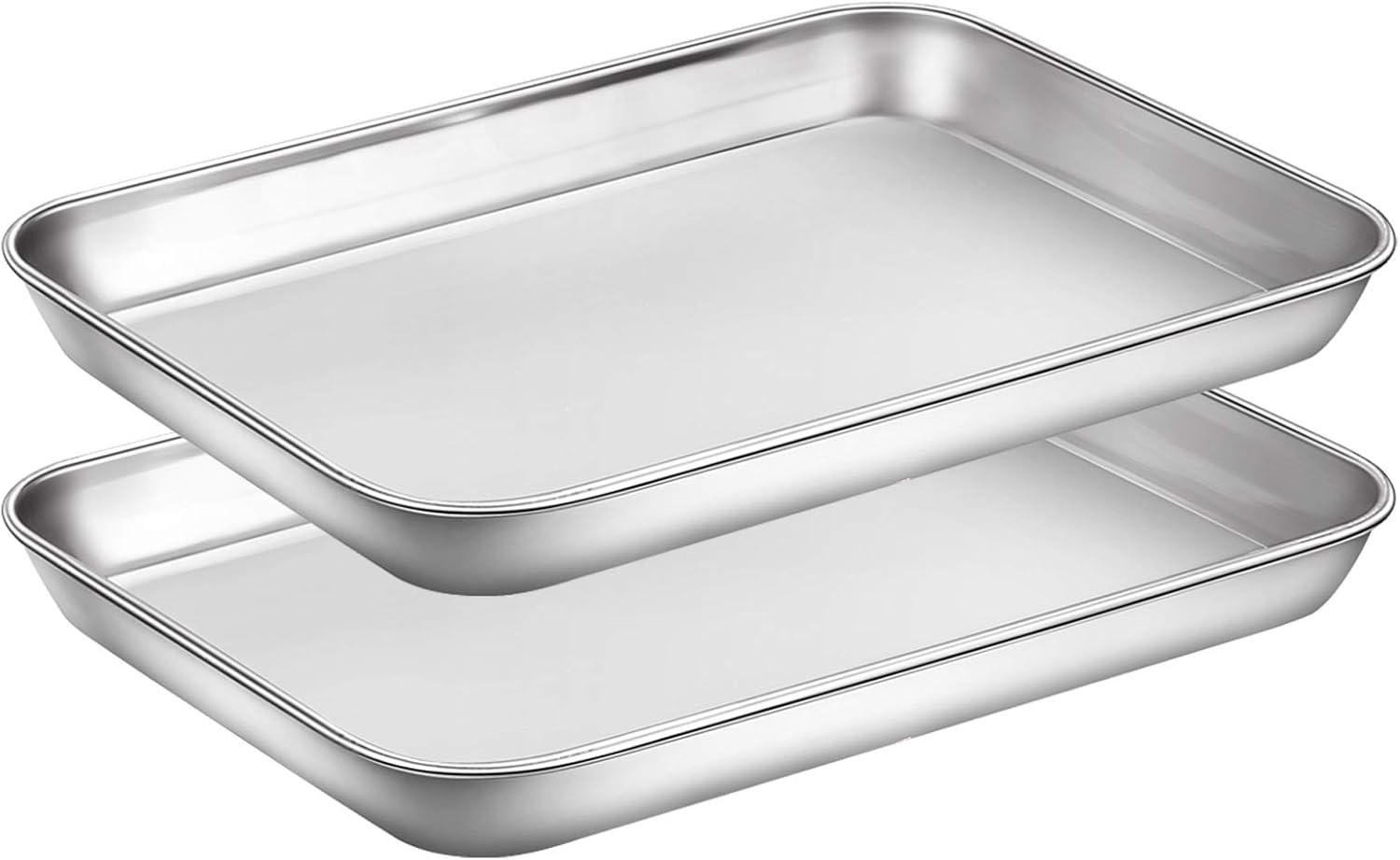 - MULTI USE: Including 2 baking sheet 9 x 7 x 1 inch, a great replacement of aluminum pans, fits most regular toaster ovens, meet most of your daily baking or roasting needs, also good to be used as serving tray, cookie sheet, etc
