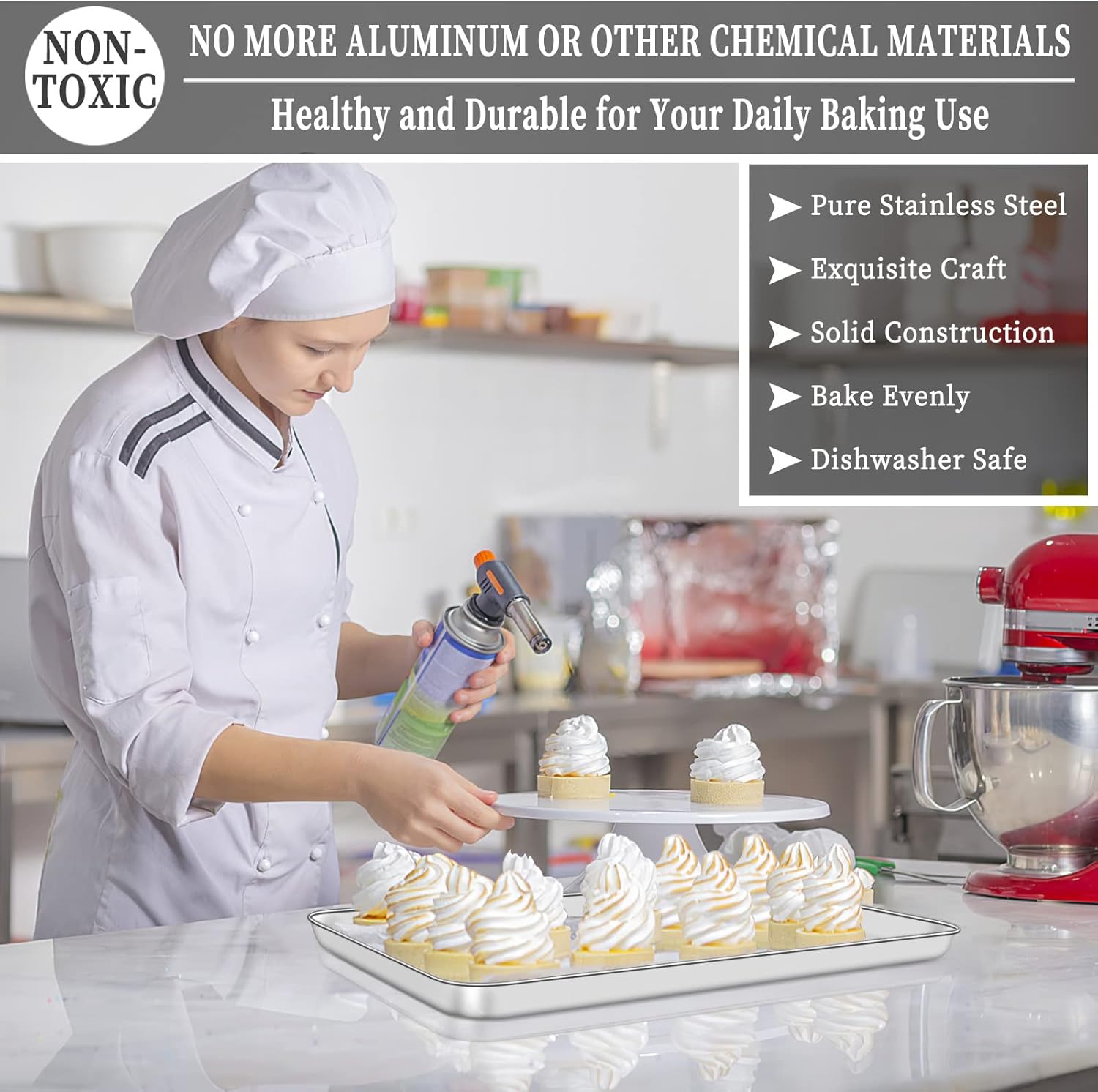 - š„ [ENJOY HEALTHY BAKING] Deedro baking sheets and baking racks are constructed with pure stainless steel without any toxic substance or chemical coating, PTFE, PFOA, BPA and rust free. You needn't worry about coating flaking off or noxious material leaching into your food, great substitution of aluminum pan, healthy and safe for daily use.