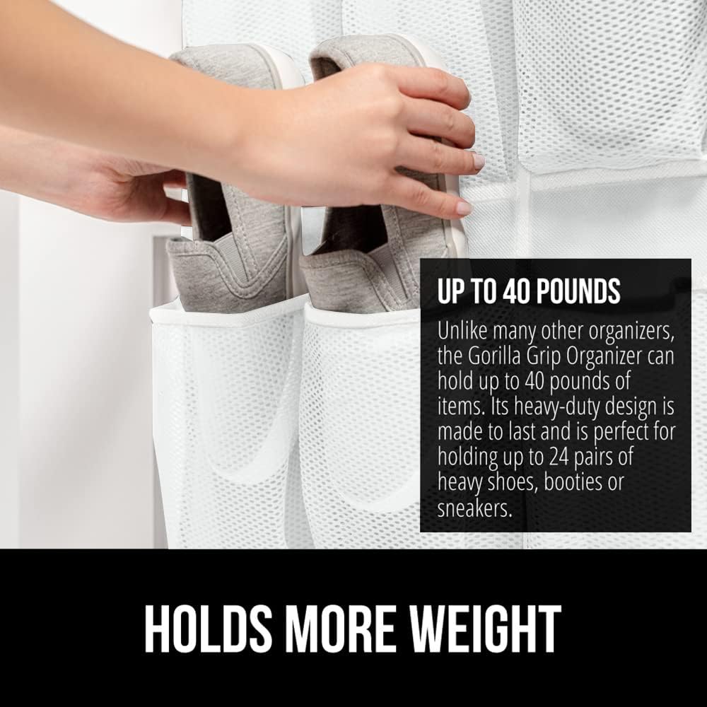 GORILLA GRIP Over the Door Shoe Organizer, 2 Pack, 24 Breathable Mesh Pockets, Space Saving Hanging Storage Holder, Closet Rack Hanger Holds Up to 40 lbs, Hangs on Closets, Shoes, Accessories, White
