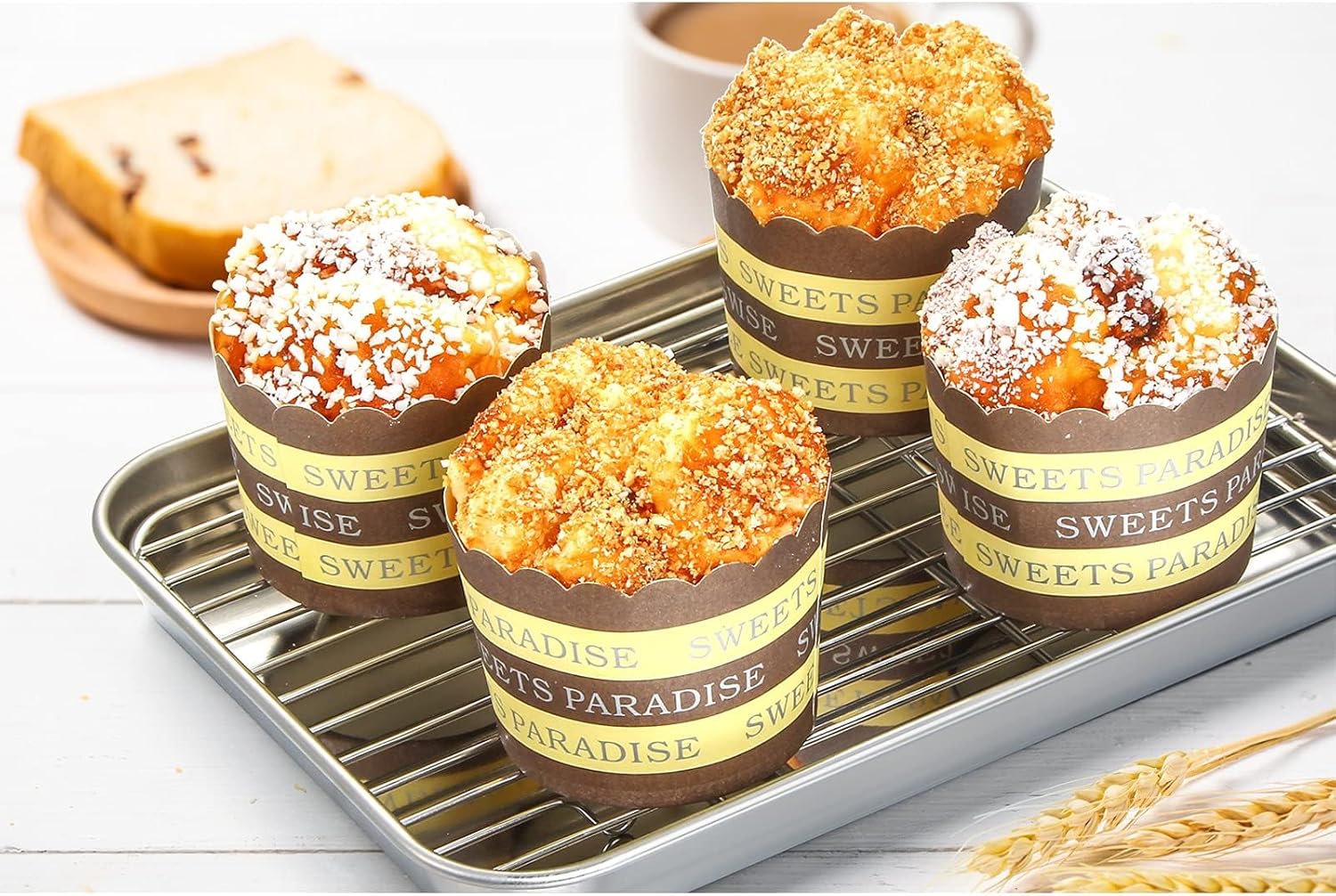 - PERFECT SIZE: 4 Pieces, 2 baking pans are 12.36 x 9.61 x 1.00 inch and 2 kind of cooling racks both are 11.57 x 8.98 x 0.67 inch. Best professional bakeware set for dessert chef and baking lover, And perfect to be used as cookie sheet or baking sheet for your regular oven and toaster oven