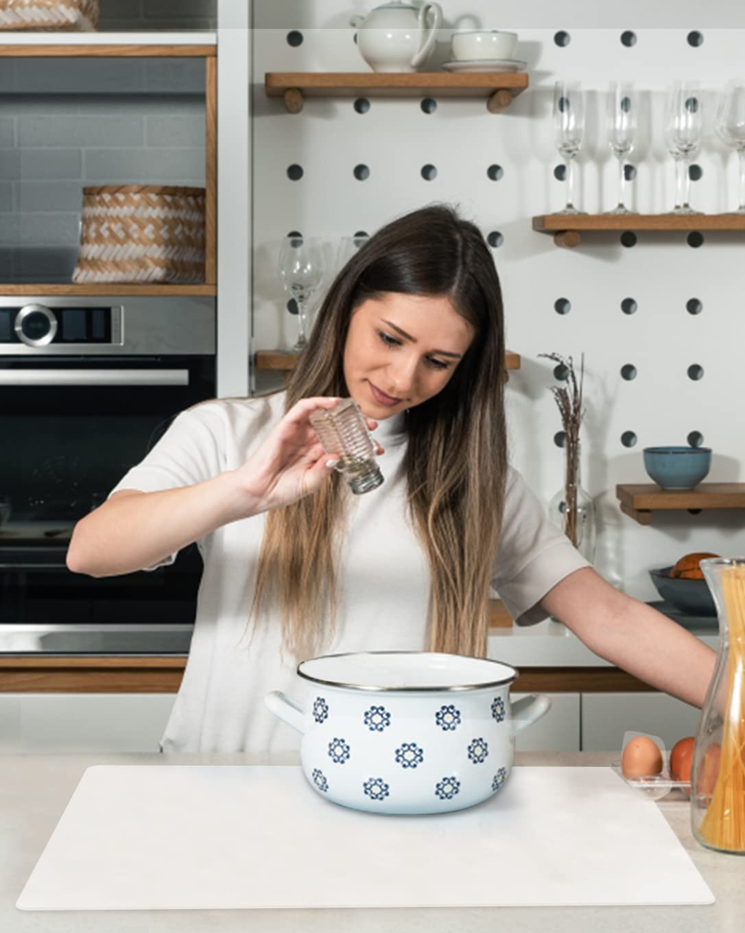 - 🎯Heat Resistant Placemats: The effective insulation of these translucent extra large silicone mat could reach to 446℉(230℃), can protect your dining table or countertop from heat containers. Please don't put the clear silicone mat near the open fire. Protect your countertop from pigment stains, glue, scratches, burns, grease, etc.