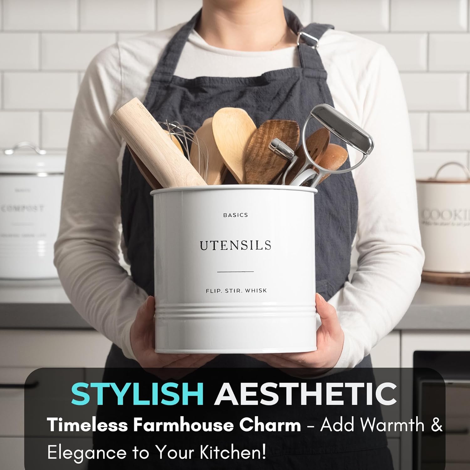 - STYLISH AESTHETIC - Elevate your kitchen's aesthetic with a farmhouse utensil holder that blends functionality with vintage charm; adds a rustic touch to your decor while efficiently organizing utensils on your kitchen countertop, adding character to your culinary space.