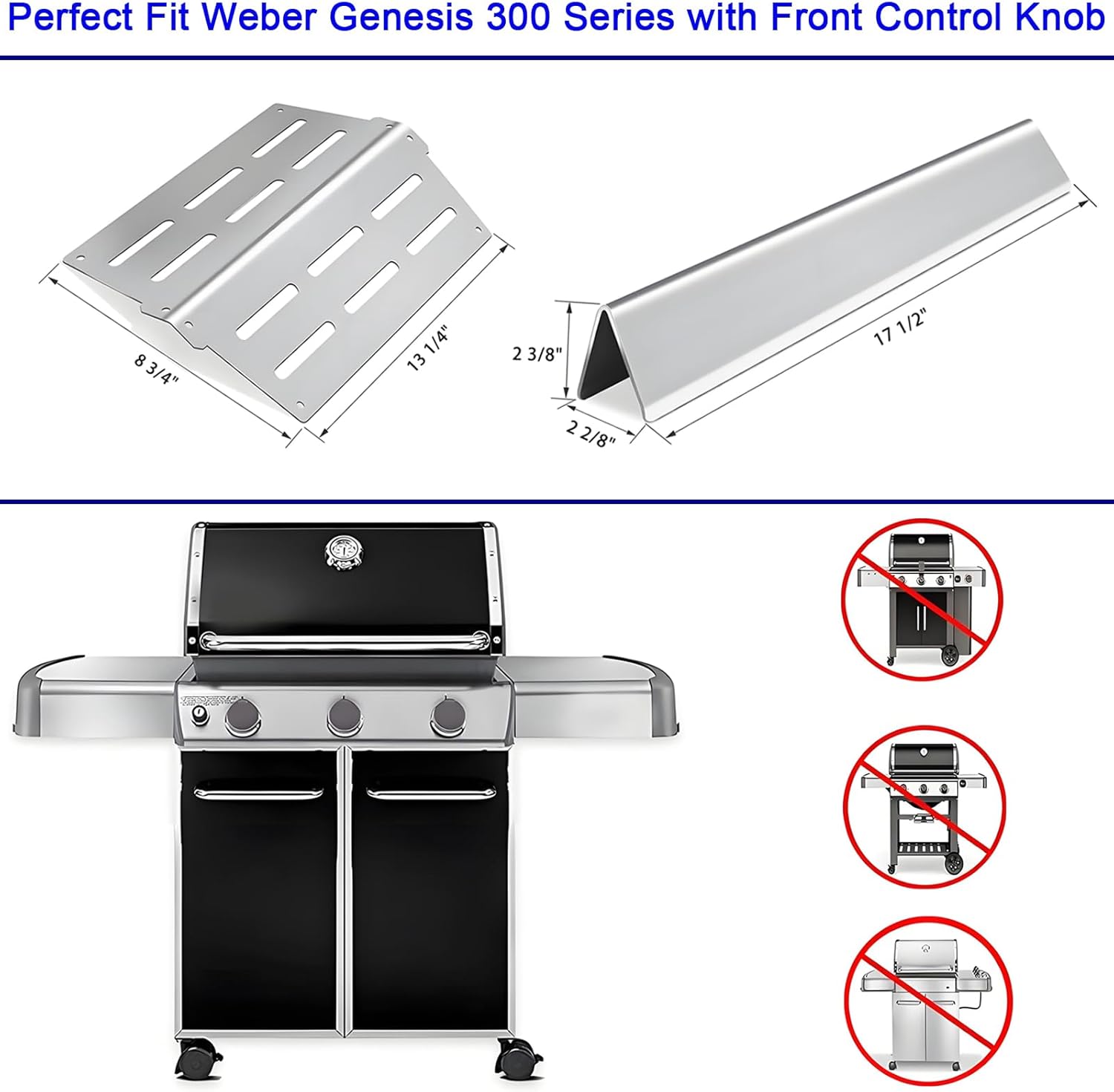 - Fits Weber Genesis E and S 300 Series Gas Grills: Genesis E-310 E-320 E-330; Genesis S-310 S-320 S-330; Genesis EP-310, Genesis EP-320, Genesis EP-330 Gas Grills; DON’t fit Weber Genesis II 300 or Genesis II LX Series. PART NUMBER: Weber 7620, 7621; Heat Deflector: Weber 7622, 62756, 65505