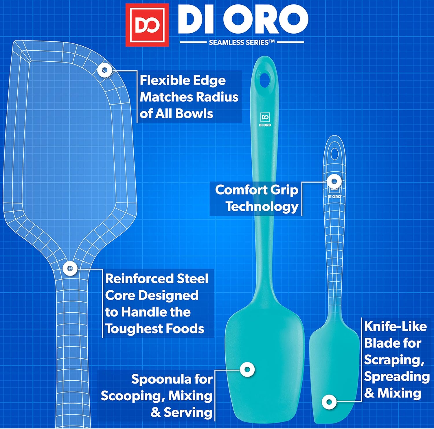 DI ORO Silicone Spatula Set - Rubber Kitchen Spatulas for Baking, Cooking, & Mixing - 600°F Heat-Resistant & BPA Free Silicone Scraper Spatulas for Nonstick Cookware - Dishwasher Safe (3pc, Teal)