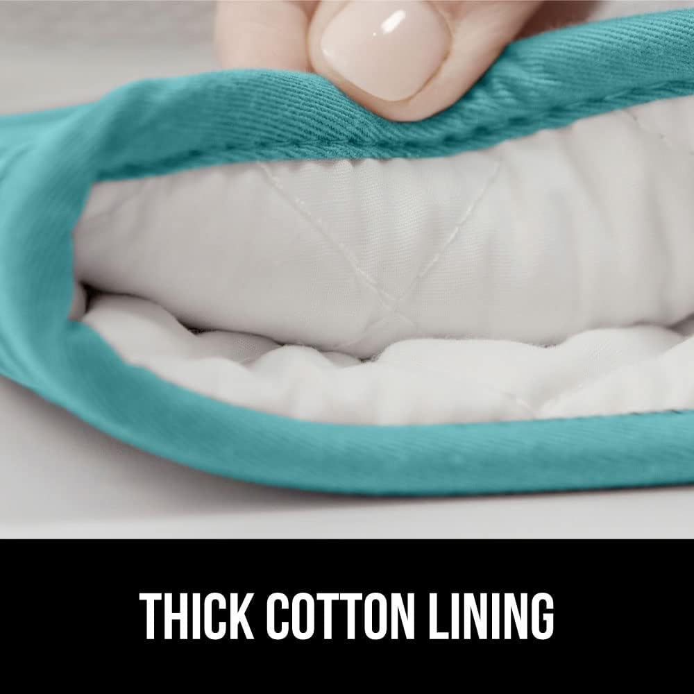 GORILLA GRIP BPA-Free Soft Silicone Oven Mitts, 14.5x8.3, Heat Resistant and Waterproof Cooking Gloves, Thick Cotton Lining, Flexible Gripping for Baking Grilling, Kitchen Potholders Set, Turquoise