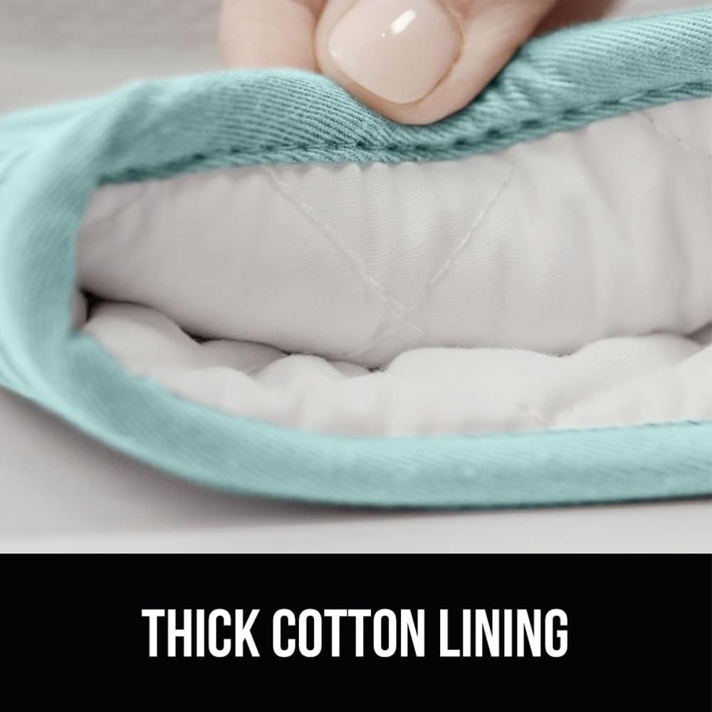 GORILLA GRIP BPA-Free Soft Silicone Oven Mitts, 14.5x8.3, Heat Resistant and Waterproof Cooking Gloves, Thick Cotton Lining, Flexible Gripping for Baking Grilling, Kitchen Potholders Set of 2, Mint