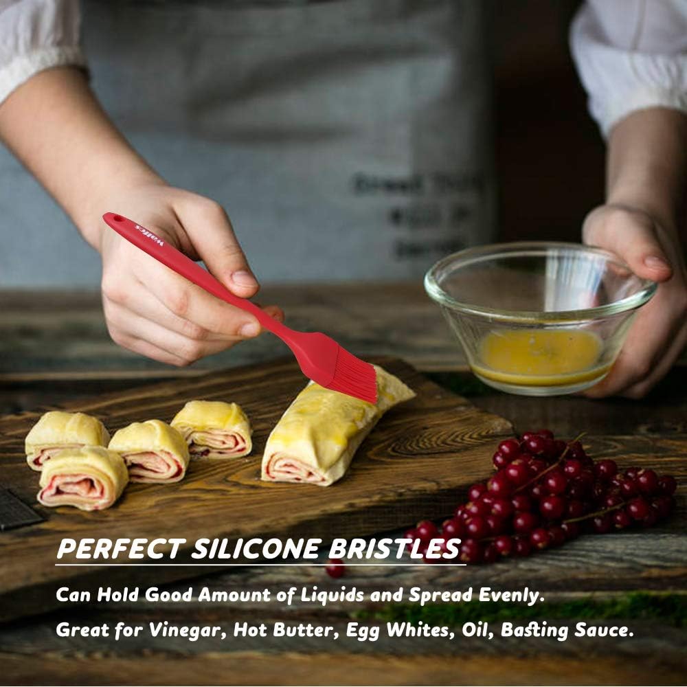 Walfos Silicone Basting Pastry Brush, Heat Resistant Pastry Brush Set, Strong Steel Core and One-Pieces Design, Perfect for BBQ Grill Baking Kitchen Cooking, BPA Free and Dishwasher safe, 2 Pcs (red)