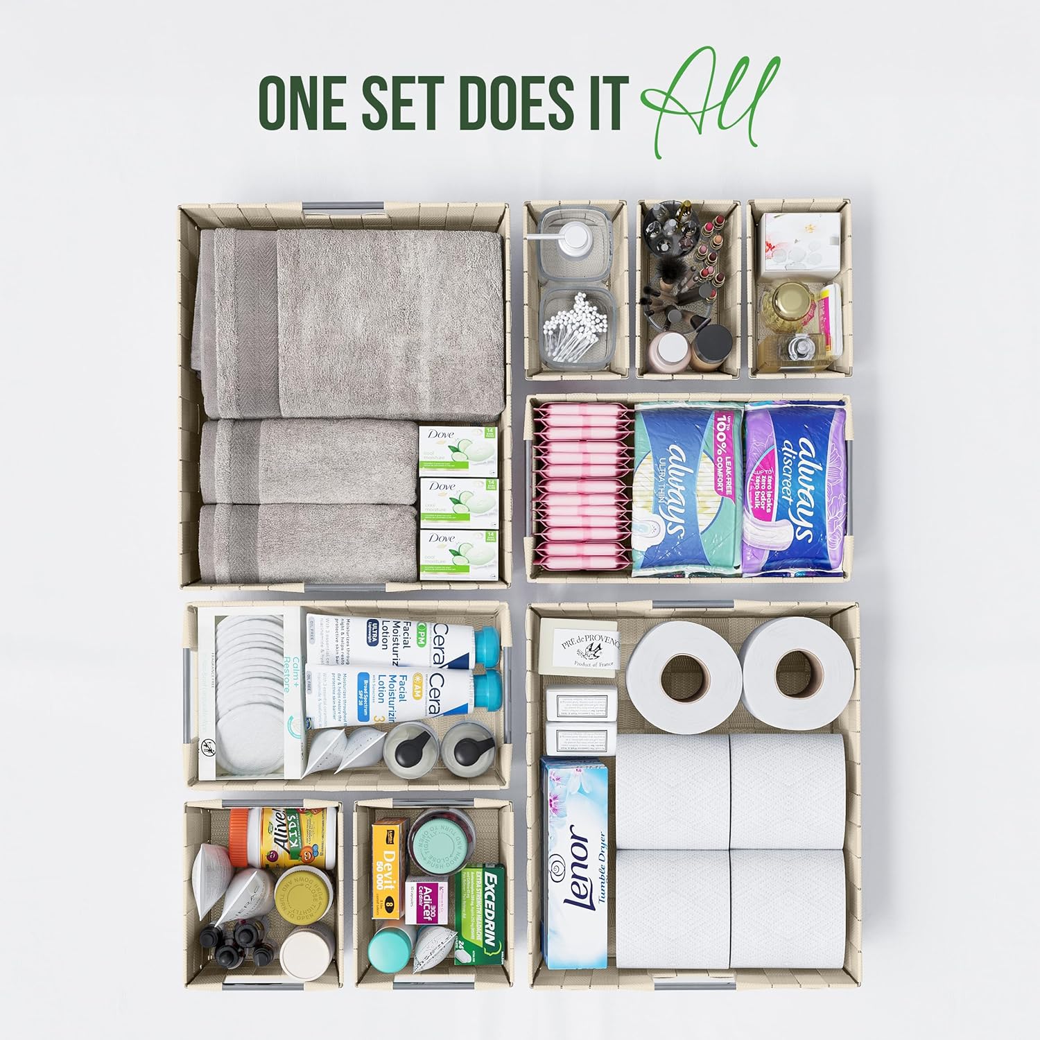 - QUALITY YOU CAN TRUST, SUPPORT YOU CAN RELY ON: At Neaterize, your satisfaction is our priority. Made with premium materials, these small organizer bins and organizing baskets are durable, stylish and perfect for decluttering. Use them as a bathroom basket organizer, closet baskets, or for bathroom closet organizers and storage. Our customer service team ensures a seamless experience with Neaterize. Whether you call them canastas para organizar or woven baskets for storage, they're made for you.