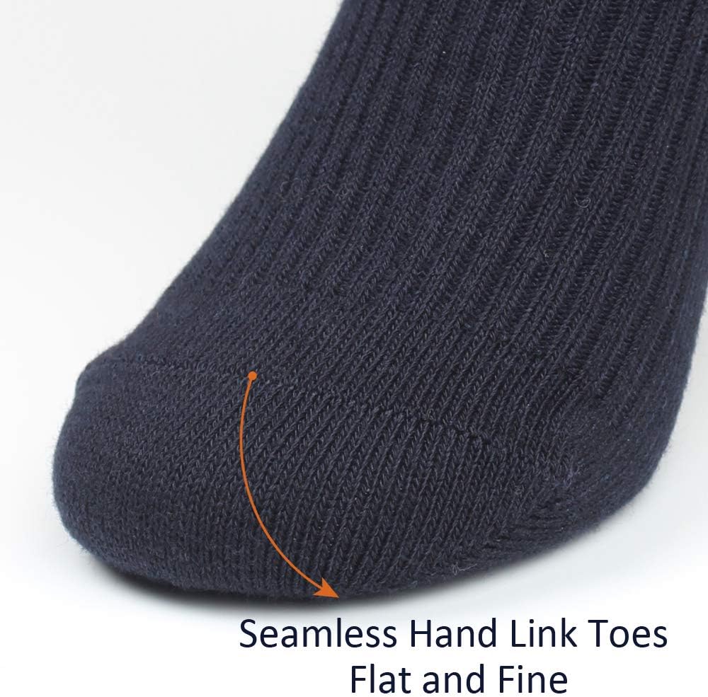 COTTON DAY Unisex Little Kids Youth Boys Girls Soft Cotton Crew Dress Socks Seamless Toe Black White Gray Navy 6 Pack