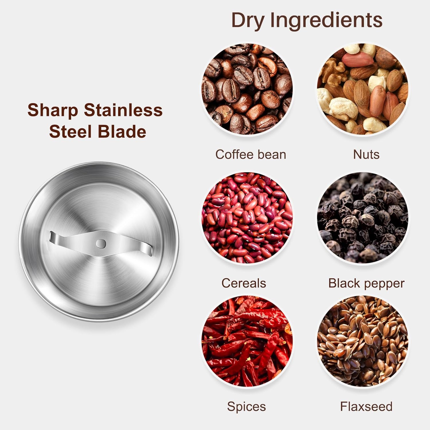 - Package Included: You will get a coffee grinder, a 2-blade cup, a brush, a user manual