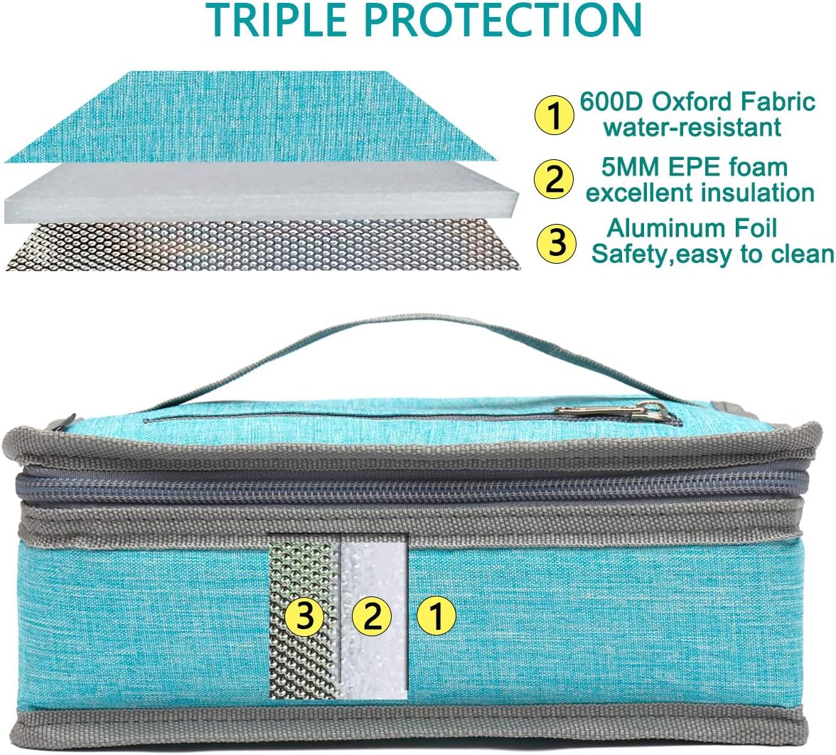 - ✿ Portable:Handle and could easy put into backpack or large handbag.Soft grip handles of Lunchbox is designed for convenient carrying, inner mesh pocket can separately stores ice pack and tableware. Easy to clean and dry, just wipe it with a wet cloth.