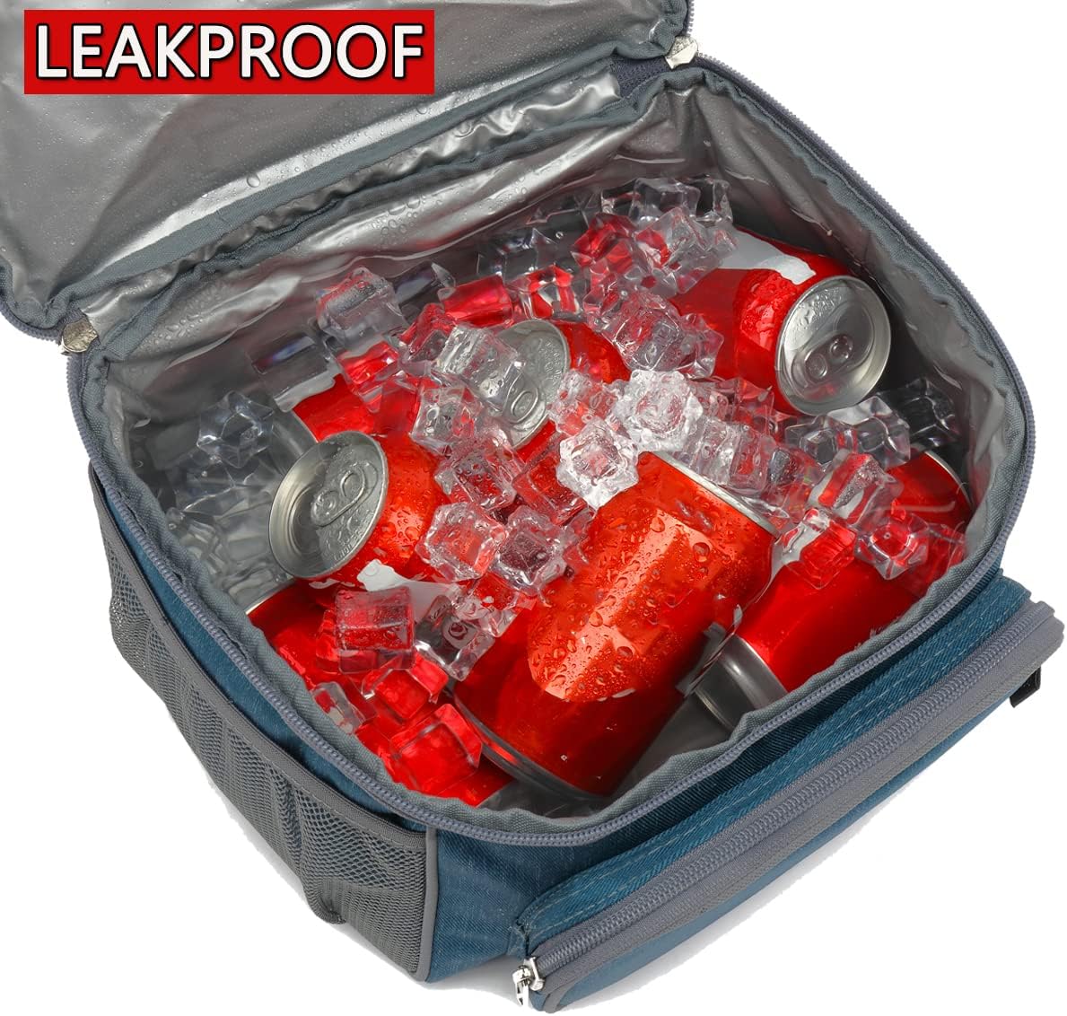 FlowFly Double Layer Cooler Insulated Lunch Bag Adult Lunch Box Large Tote Bag for Men, Women, With Adjustable Strap,Front Pocket and Dual Large Mesh Side Pockets