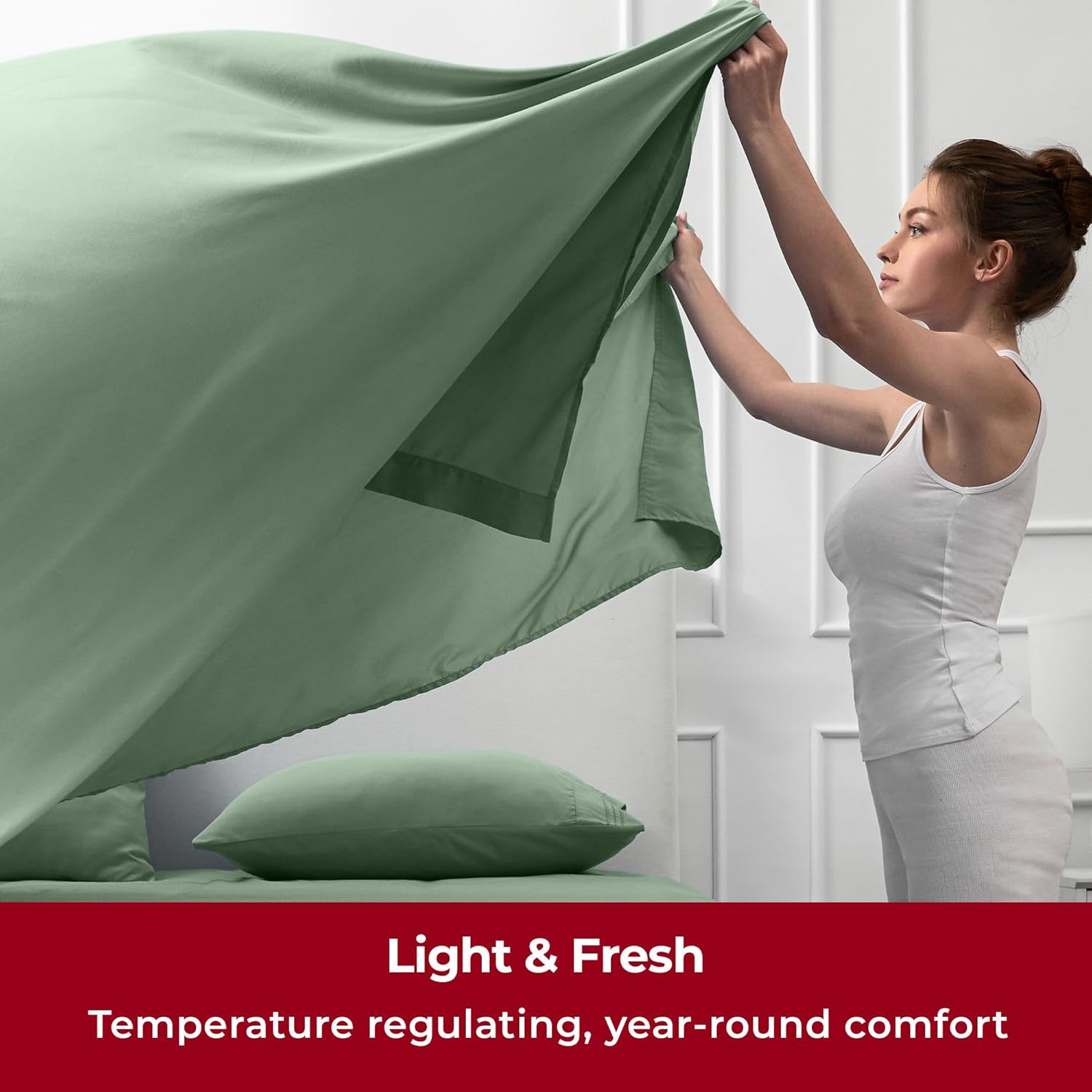 Mellanni Split King Sheets Set - 5 PC Iconic Collection Bedding - Hotel Luxury, Extra Soft, Cooling Bed Sheets - Wrinkle, Fade, Stain Resistant (Split King, Sage)