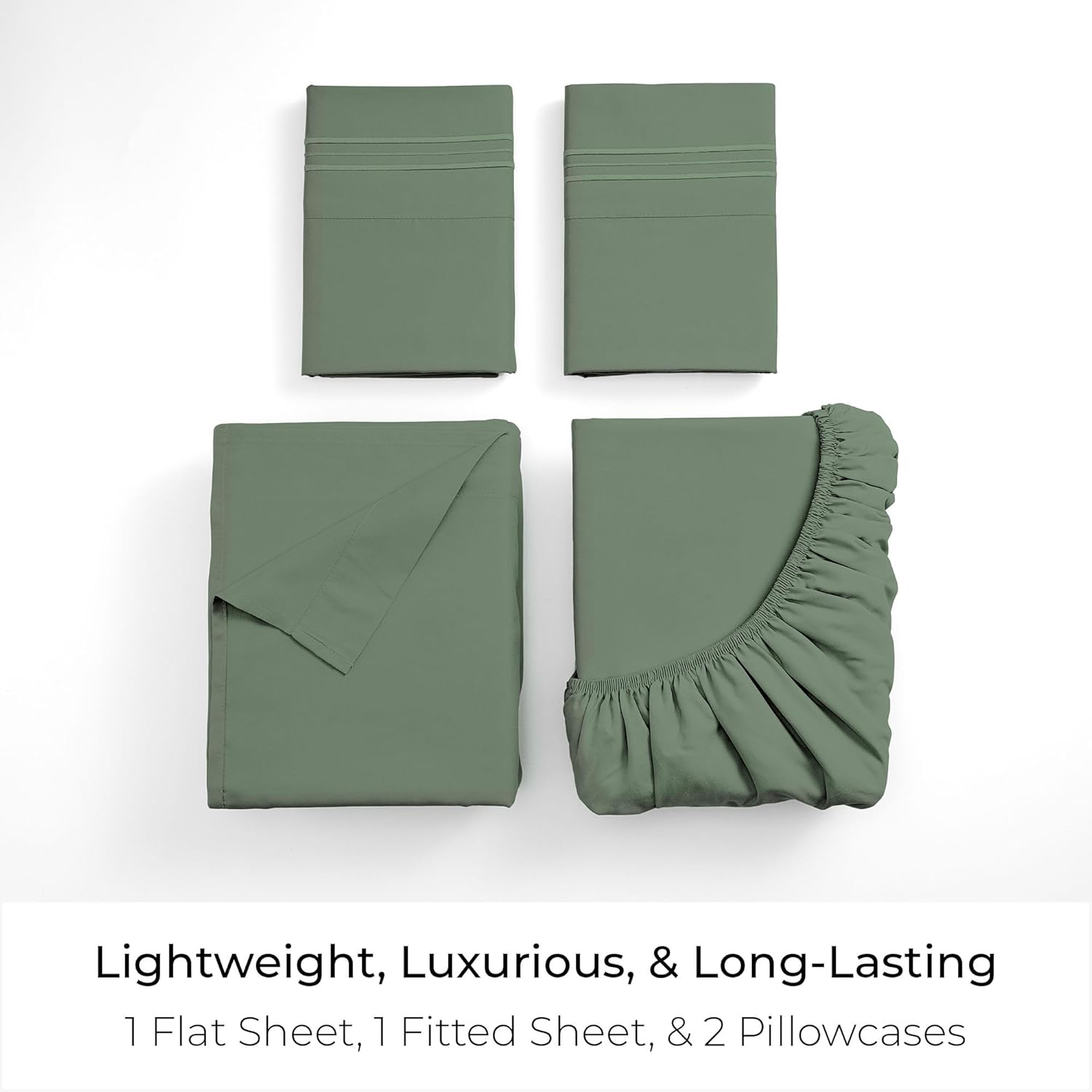 Mellanni Queen Sheets Set - 4 PC Iconic Collection Bedding - Hotel Luxury, Extra Soft, Cooling Bed Sheets - Wrinkle, Fade, Stain Resistant (Queen, Sage)