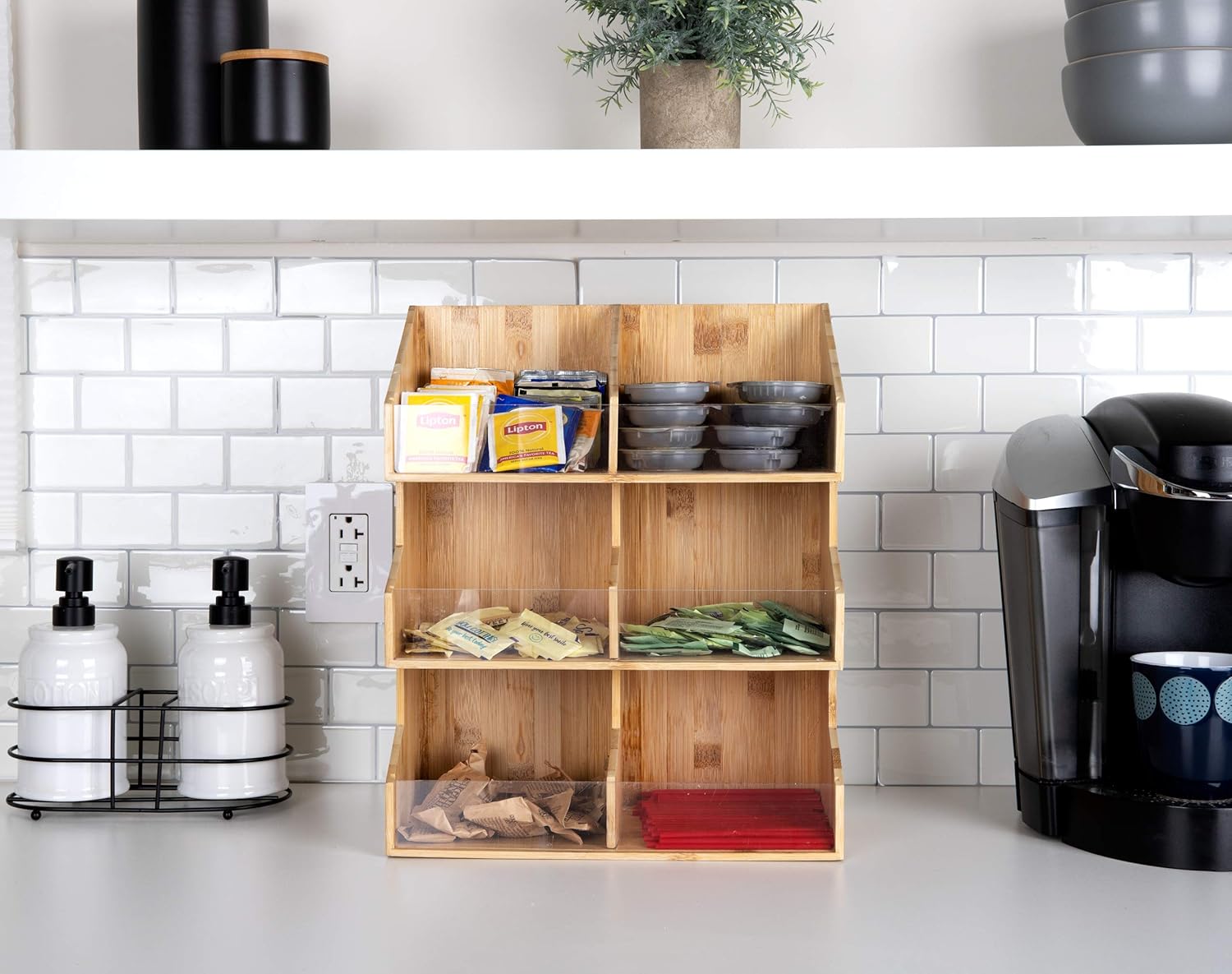 Mind Reader Coffee Pod Condiment Station, Countertop Organizer, Kitchen, Rayon from Bamboo, 13" L x 6.25" W x 15.25" H, Brown