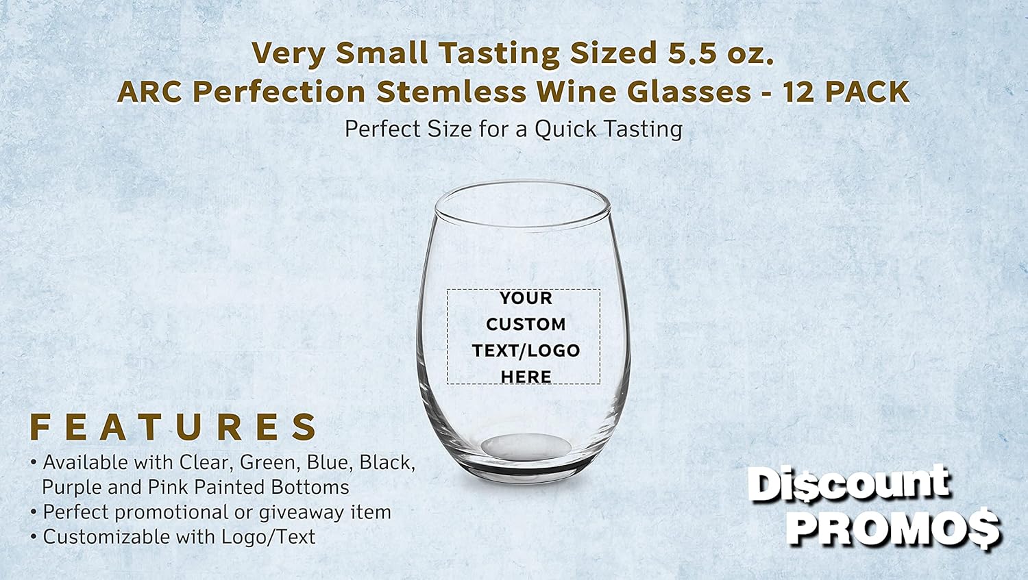 Custom Stemless Wine Glasses by ARC 5.5 oz. Set of 12, Personalized Bulk Pack - Perfect for Hotel, Bar, Restaurant or Lounge - Black