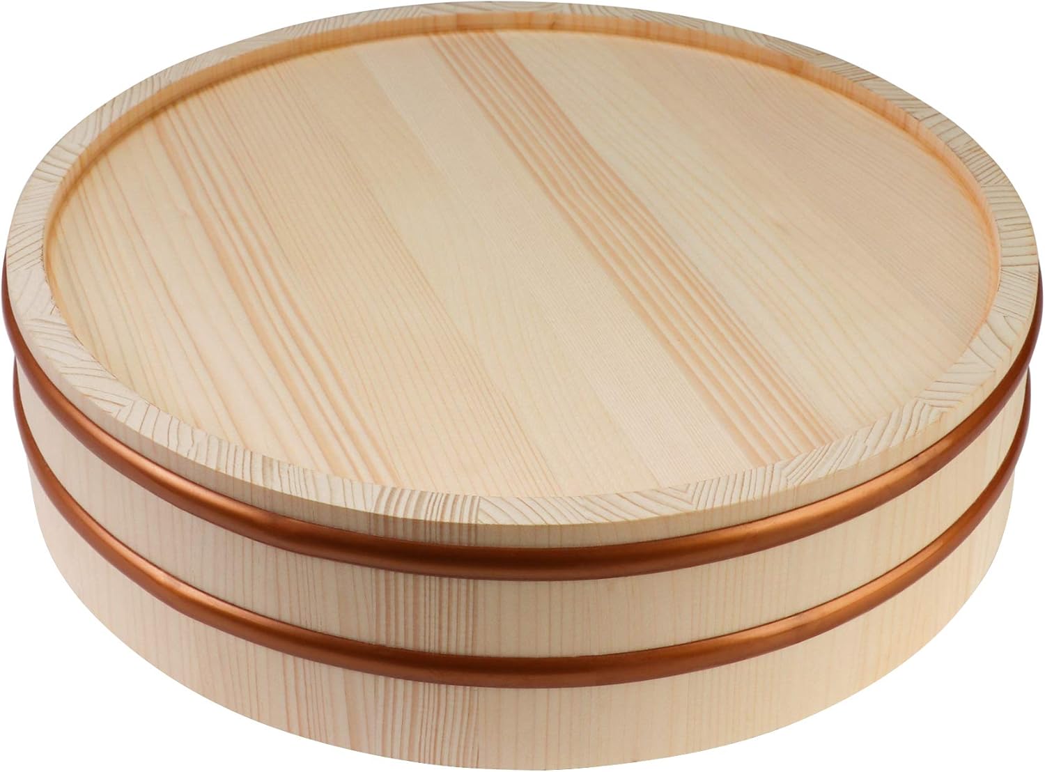 Kichgather Wooden Sushi Rice Bowl with Lid Hangiri Sushi Oke Sushi Rice Mixing Tub (11.8 ” with lid)