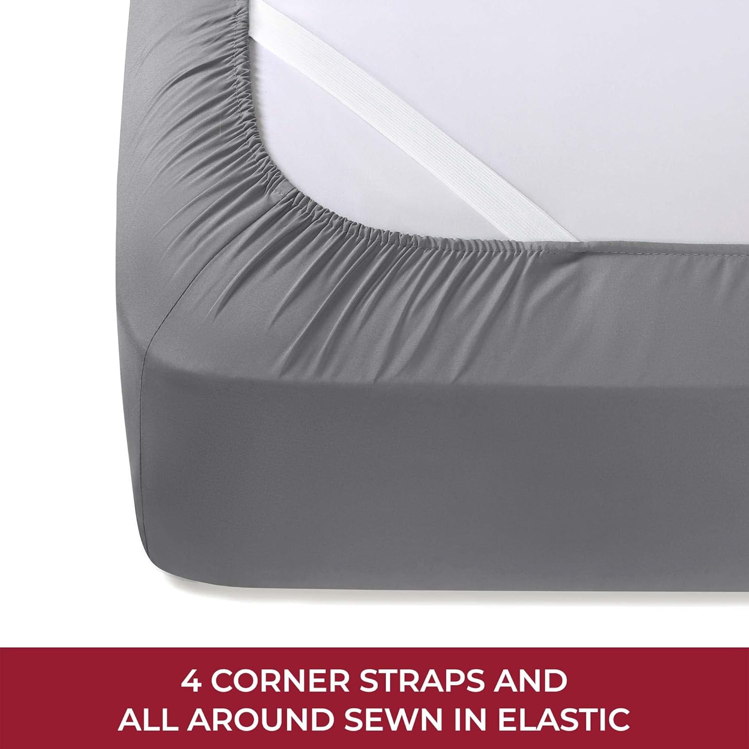 Mellanni RV Short Queen Sheets - 4 PC Iconic Collection Bedding - Hotel Luxury, Extra Soft, Cooling Bed Sheets - Deep Pocket up to 10 inch (RV/Short Queen, Gray)