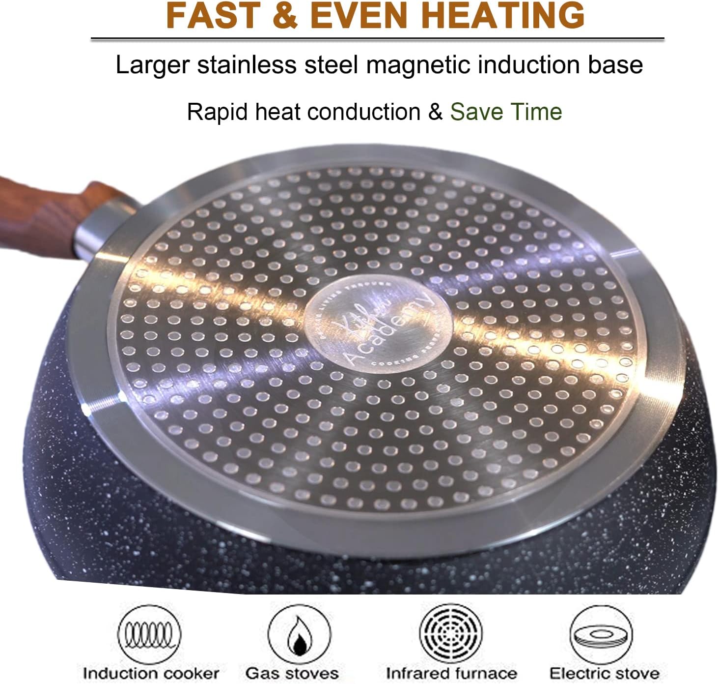 Kitchen Academy Induction Cookware Sets - 12 Piece Cooking Pan Set, Granite Black Nonstick Pots and Pans Set