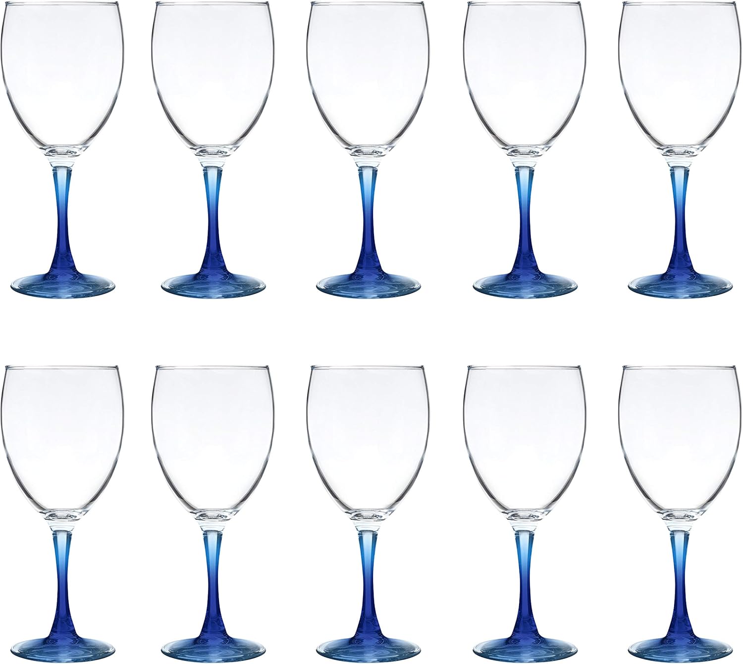 DISCOUNT PROMOS Nuance Wine Glasses by ARC 10.5 oz. Set of 10, Bulk Pack - Restaurant Glassware, Perfect for Red Wine, White Wine, Cocktails - Blue