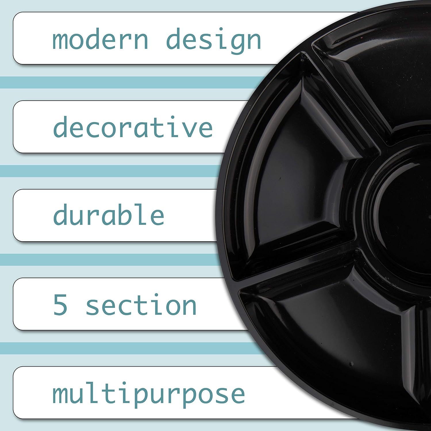 Plasticpro 6 Sectional Round Plastic Serving Tray/Platter (4, Black)