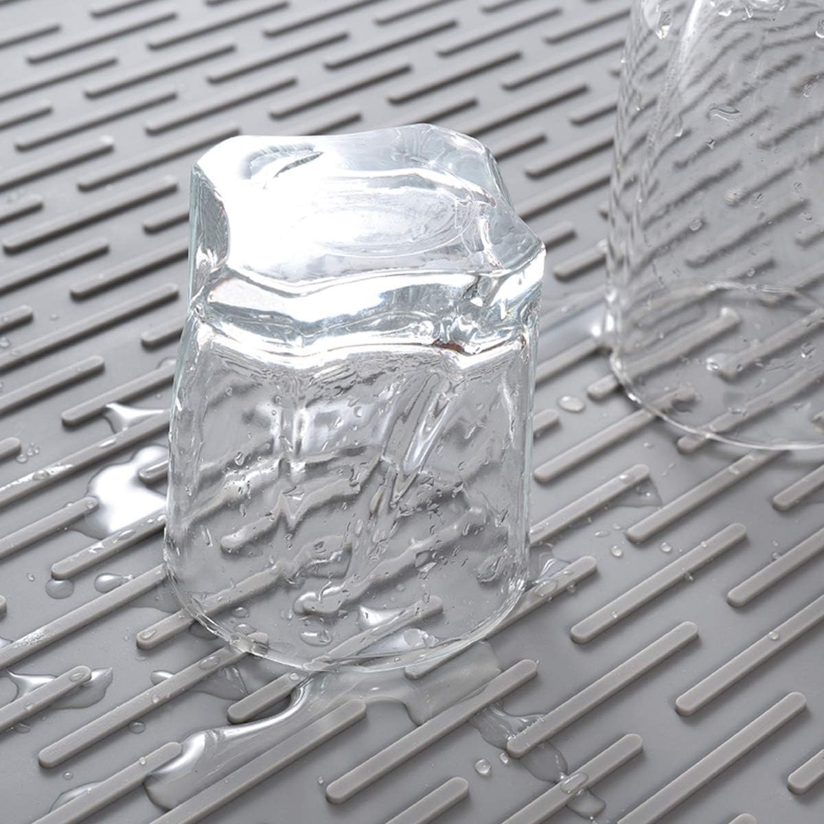 Silicone Dish Drying Mat for Multiple Usage,Easy clean,Eco-friendly,Super Sturdy Silicone Dish Drying Mat and Trivet, Dishwasher Safe, Heat Resistant (Gray, L 17.7×15.7inch)