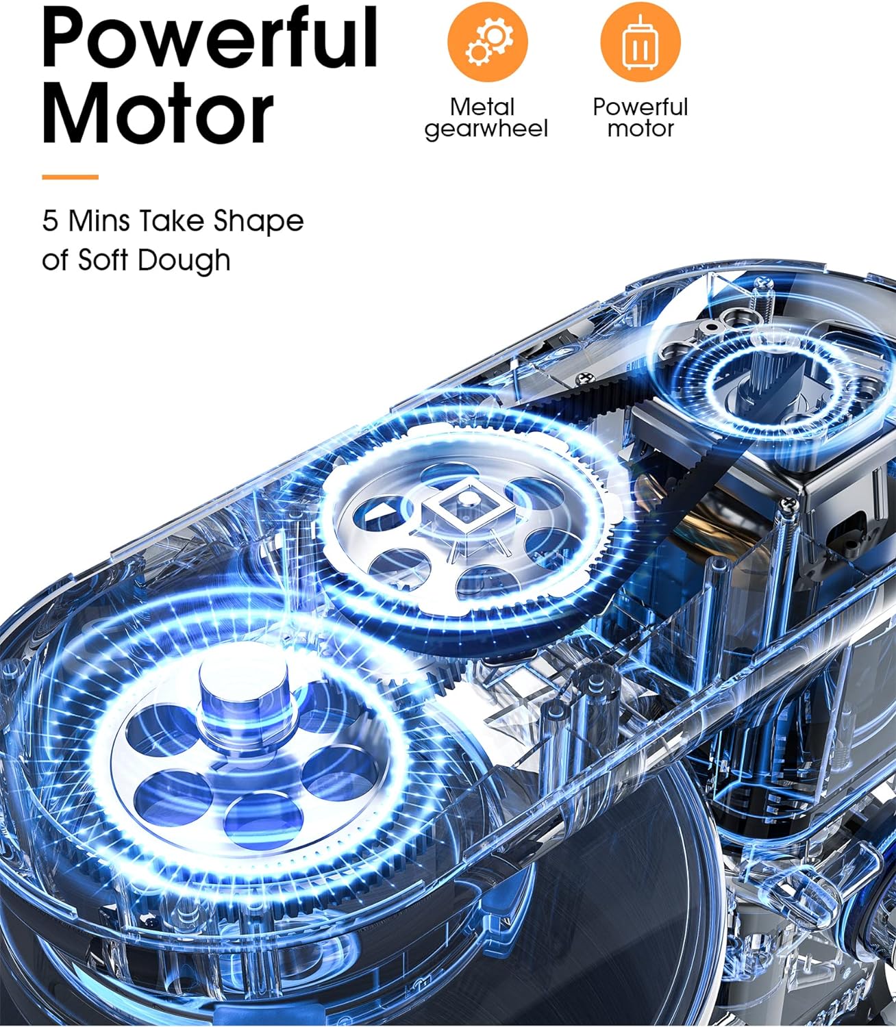 - 🍰【660W Motor & 5 Mins Take Shape of"Soft Dough"】Facelle household stand mixer equipment with 660W high-performance pure metal gear wheel motor, realize 5 minutes take shape of "soft dough” without heating up,help you and your family make the baking more tender and delicious.besides,save your time and energy