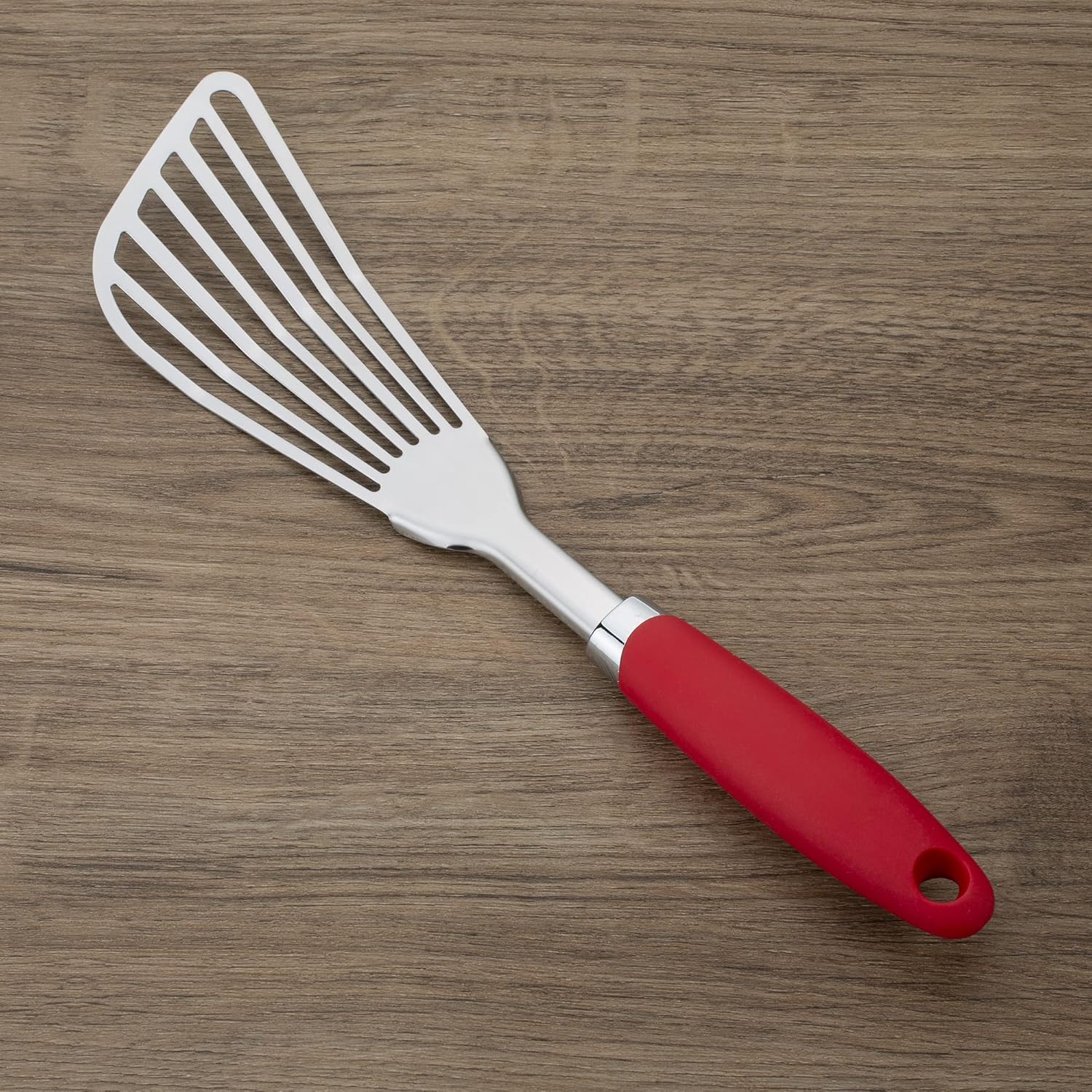 304 Stainless Steel Fish Spatula, Non-Slip Ergonomic Handle Slotted Spatula, Red