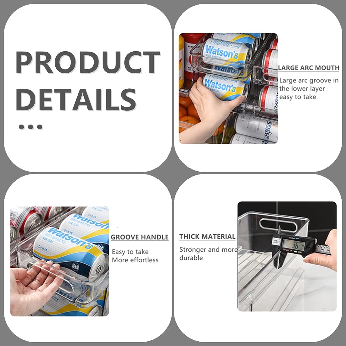 - SAVE SPACE:The slim and double-layer design maximizes storage space. Ideal for refrigerator, kitchen Counters, Freezers, Shops, Camping, RVs storage; This soda can dispenser makes it easy to organize small or crowded kitchen spaces and make organizing and everyday living a little easier; Great for busy families and professional organizers.