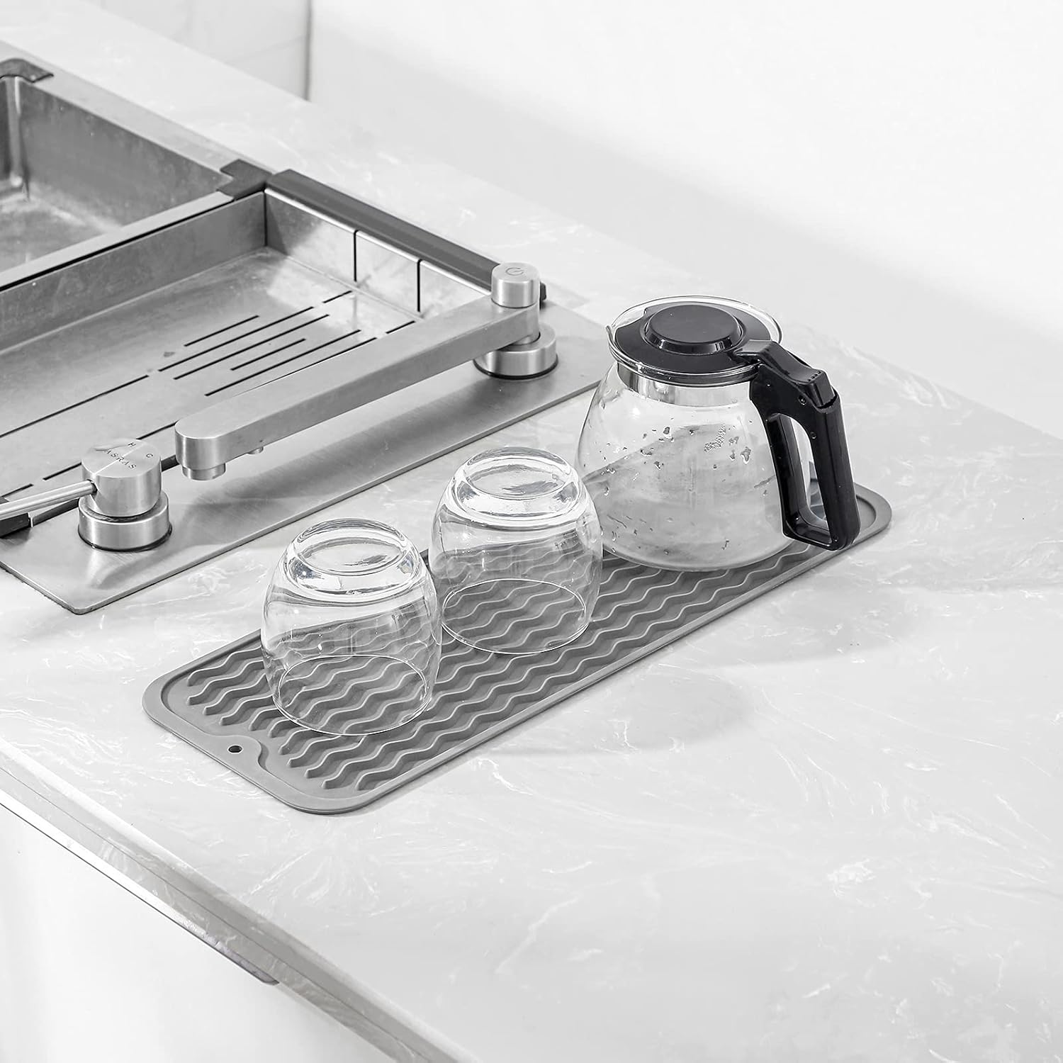 Silicone Dish Drying Mat for Multiple Usage,Easy clean,Eco-friendly,Heat-resistant Silicone Mat for Kitchen Counter,Sink,Bar,Bottle,or Cup Grey M 17 inches x 6 inches