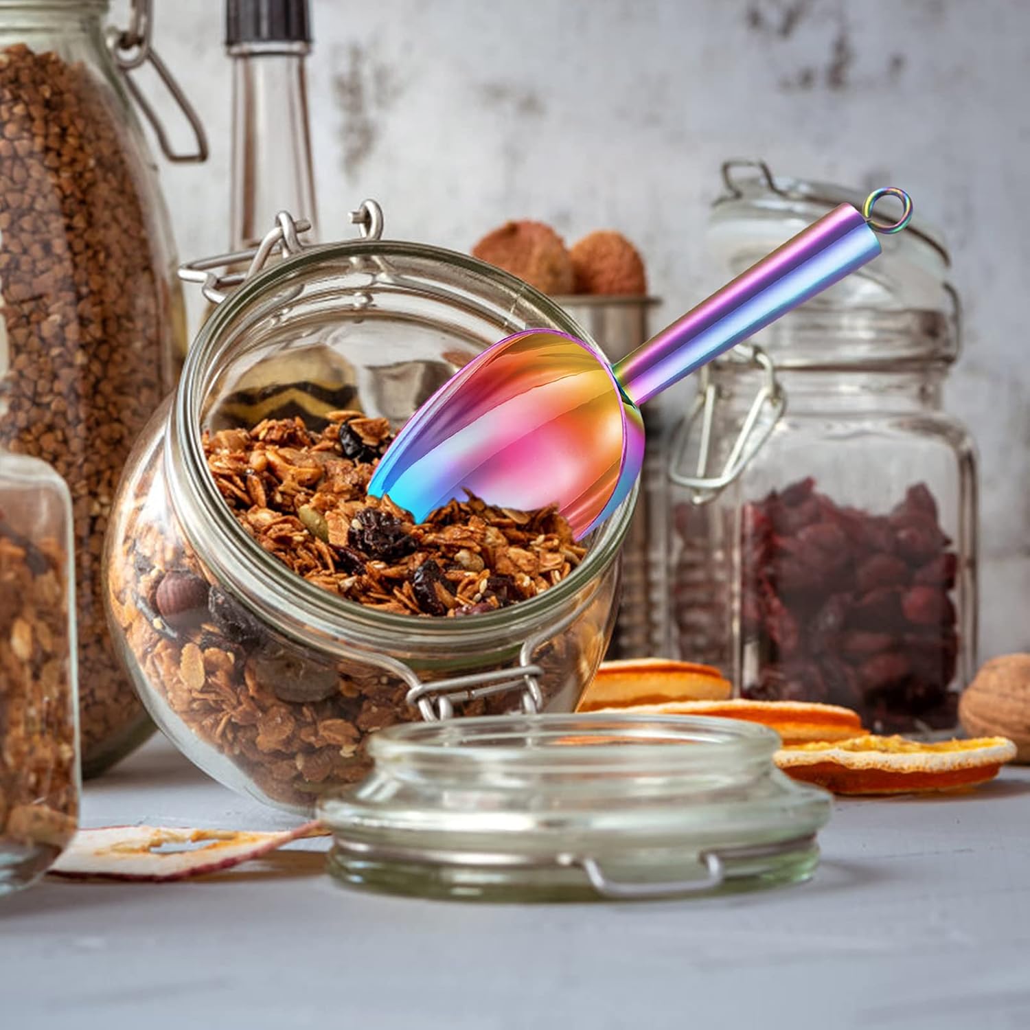 TeamFar 5oz Ice Scoop, Stainless Steel Food Scoop Metal Ice Scooper for Kitchen Bar Party Wedding, Heavy Duty & Sturdy, Easy Storage & Versatile, Mirror Finish & Smooth Edge, Colorful