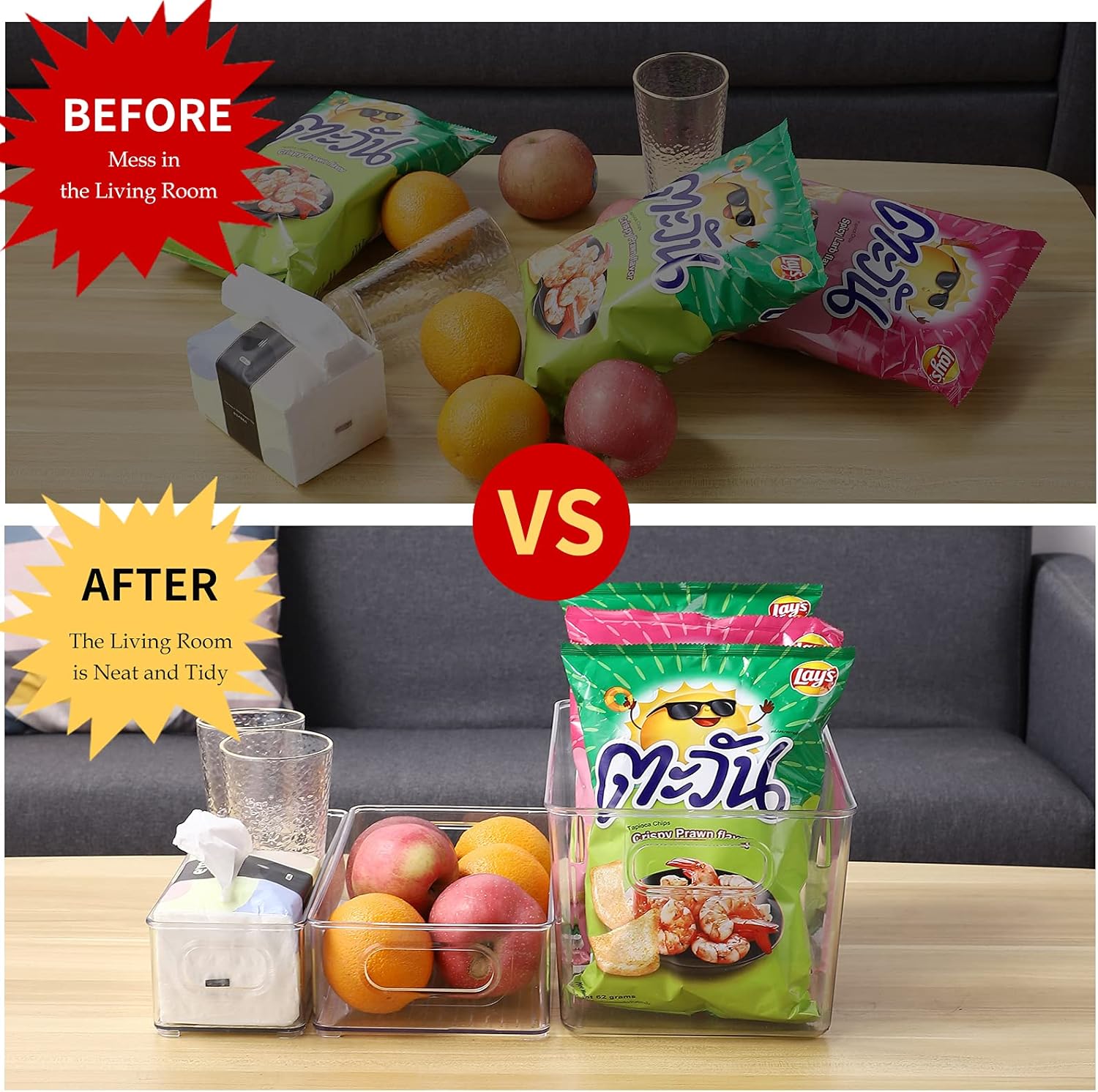 - IDEAL SIZED - storage bins fit pouches, food packets, juice boxes, jars, baby food, bottles, canned goods, fruits, yogurts, cheese, and more. Also good for storing dry goods in the pantry. Ideal for kitchens, countertops, pantry shelves, refrigerators, freezers, cabinets, or as drawer organizers.