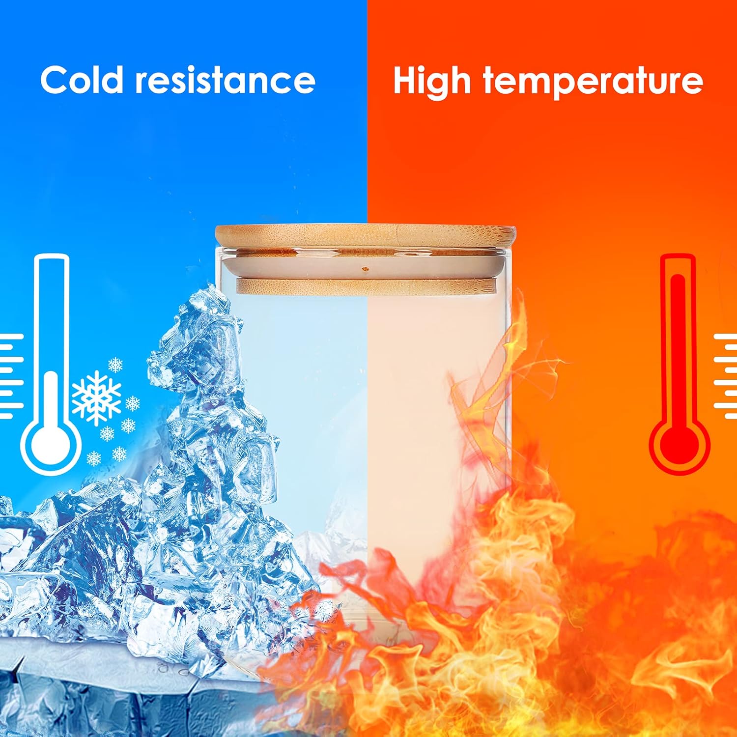 - High Quality: Glass jars made of high-borosilicate glass which features with great stability, higher hardness, heat resistance with better light transmission. Each jar cover comes with a food-grade silicone sealant ring, more effective in preventing fluid flow and the entry of gases and bugs