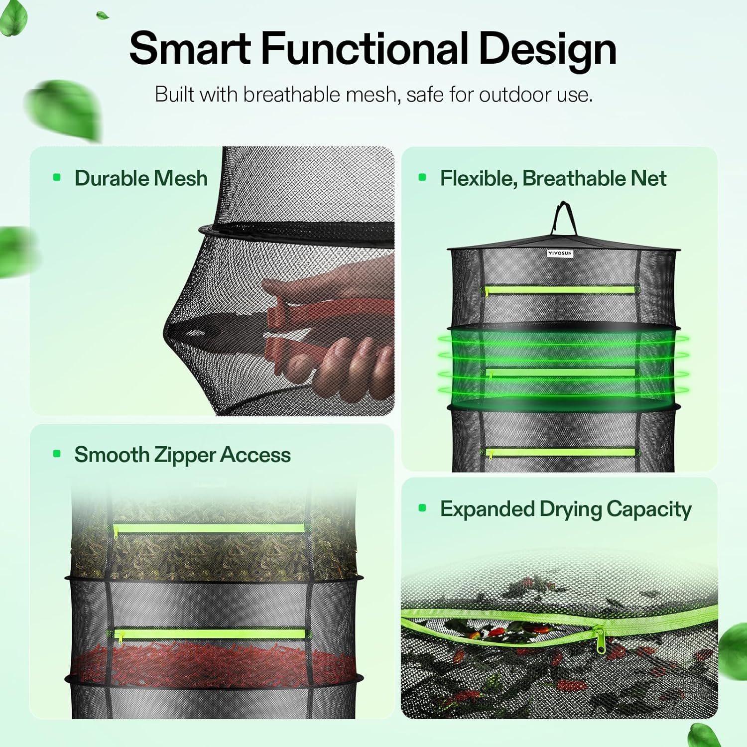 VIVOSUN 8-Layer Mesh Drying Rack Hanging Design with Green Zippers for Dehydrating, Indoor and Outdoor Pruning Shears Included