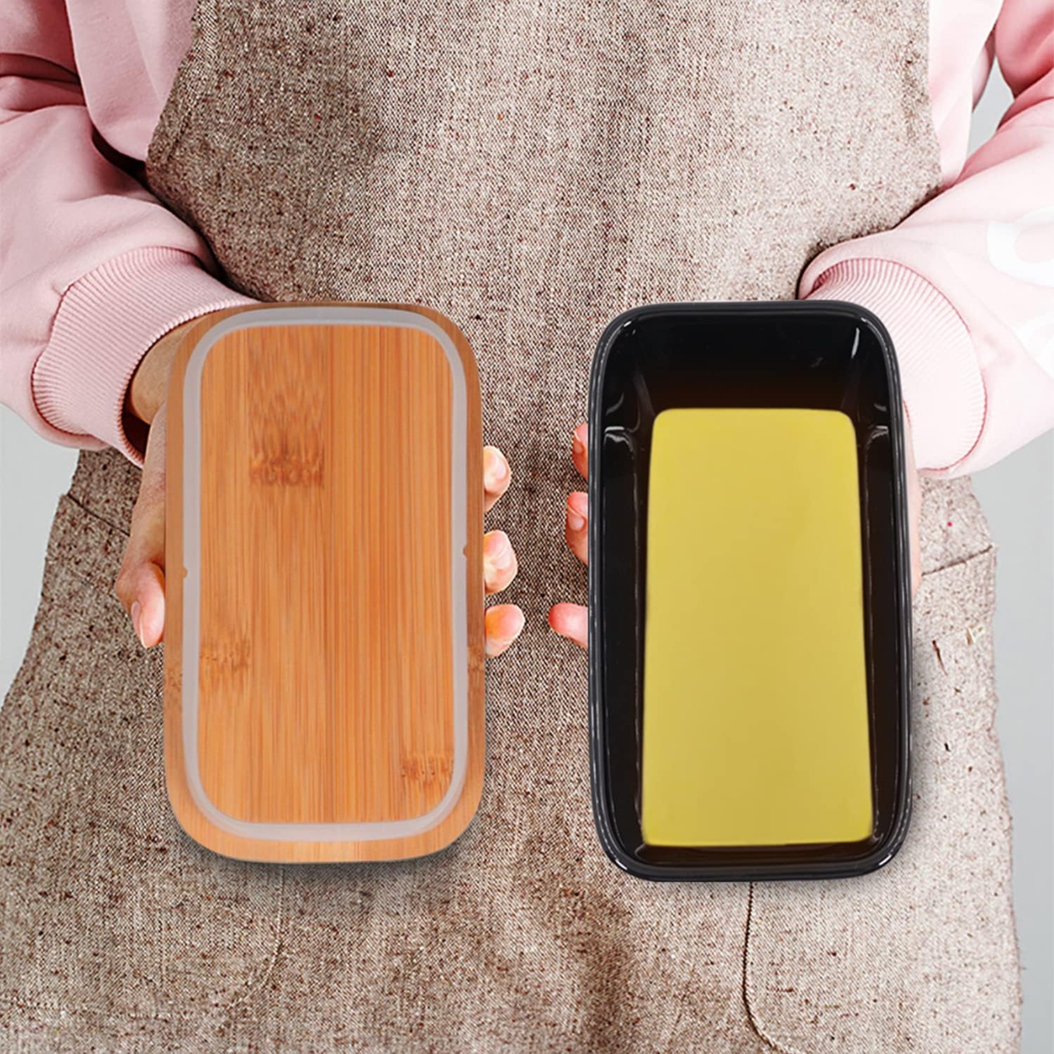 - Large Capacity - The butter dish measures 6.4"x 4"x 3", wide and deep enough to store up to two standard sticks of butter. The butter container with bamboo cover lid works perfectly for both WEST and EAST / EUROPEAN coast butter. Our modern butter dish is a great gift for butter lovers