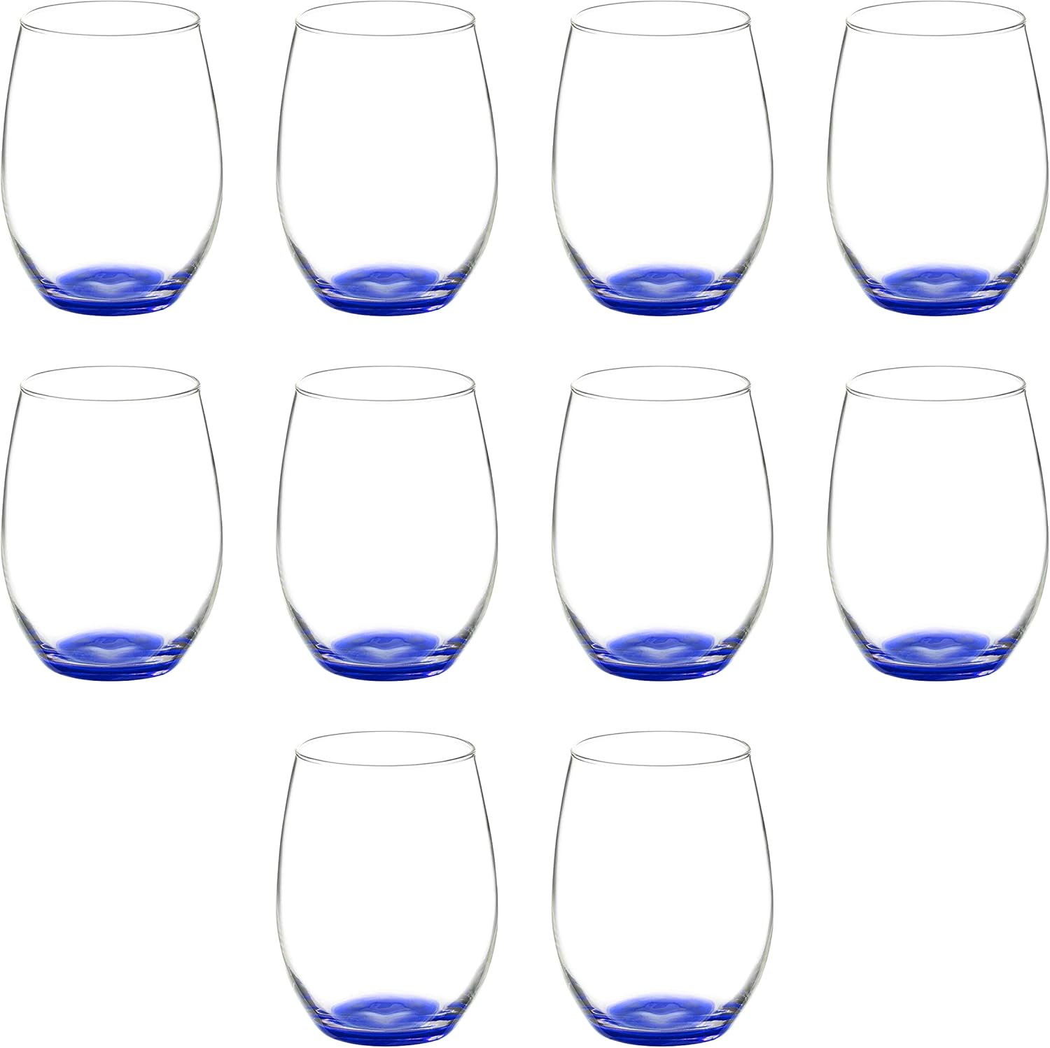 DISCOUNT PROMOS 10 ARC Stemless Wine Glasses Set, 21 oz. - Chardonnay, Cabernet, Merlot, Sauvignon - Blue