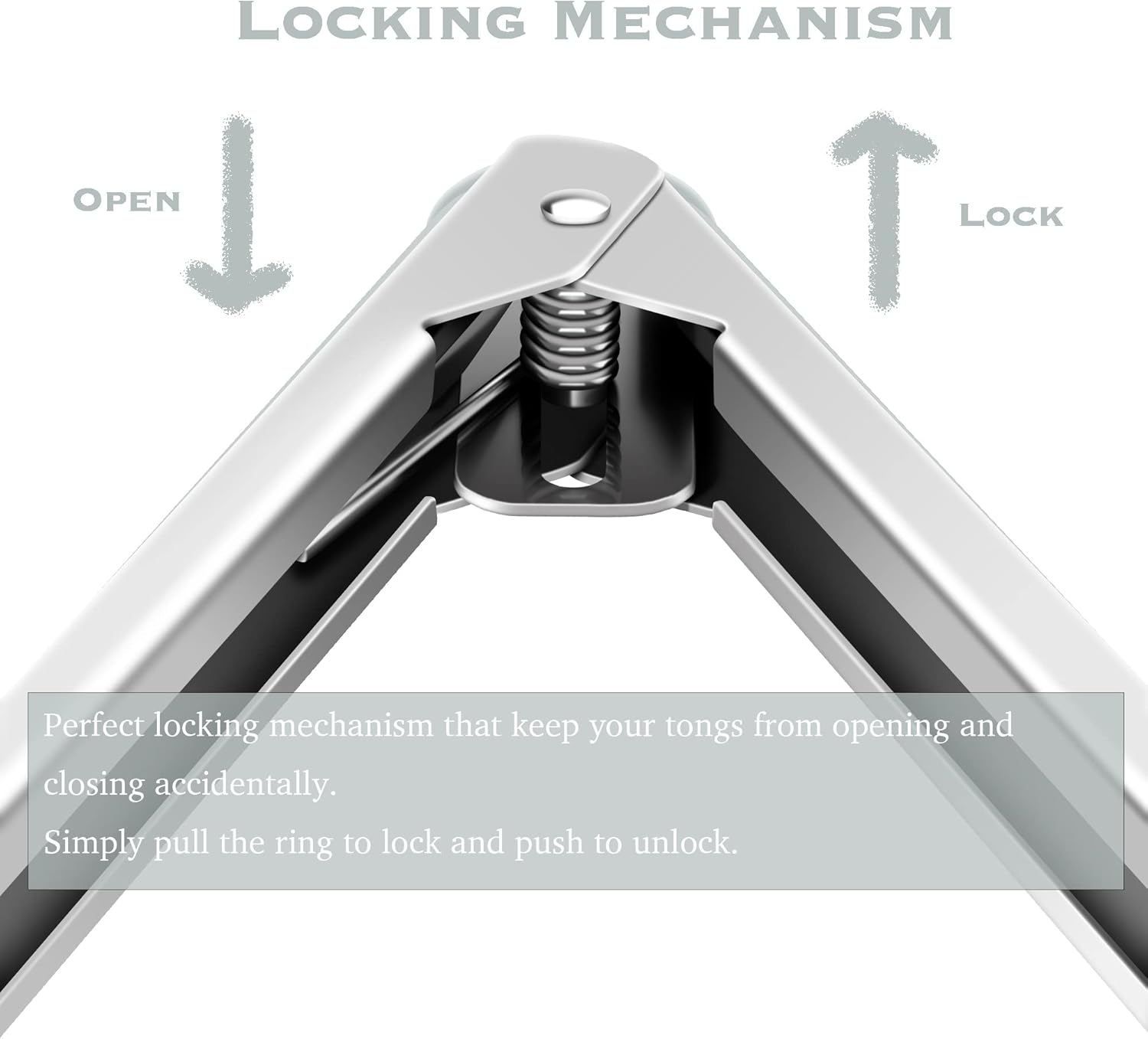 2 Pack Warm Grey Kitchen Tongs, Premium Silicone BPA Free Non-Stick Stainless Steel BBQ Cooking Grilling Locking Food Tongs, 9-Inch & 12-Inch