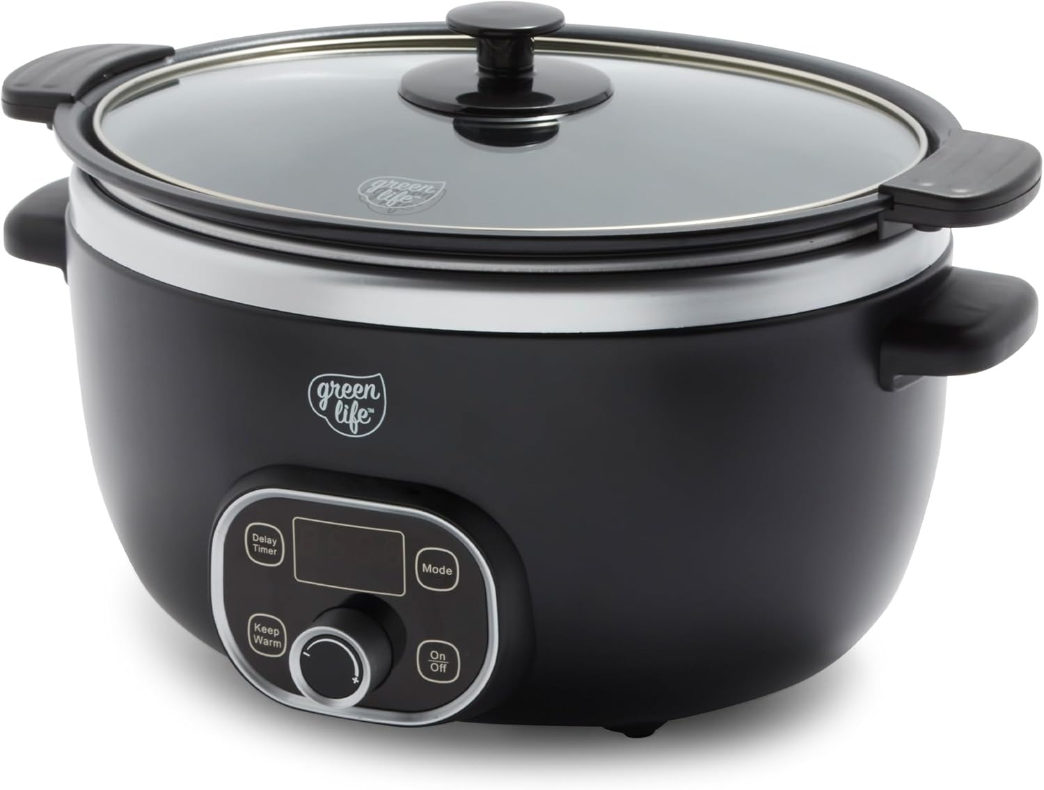 GreenLife 6QT Slow Cooker, Non-Toxic PFAS-Free Ceramic Nonstick Removable Interior Bowl, Programmable, Family Friendly, Keep Warm, Stovetop & Oven Safe, Dishwasher Safe Parts, Timer, Glass Lid, Black