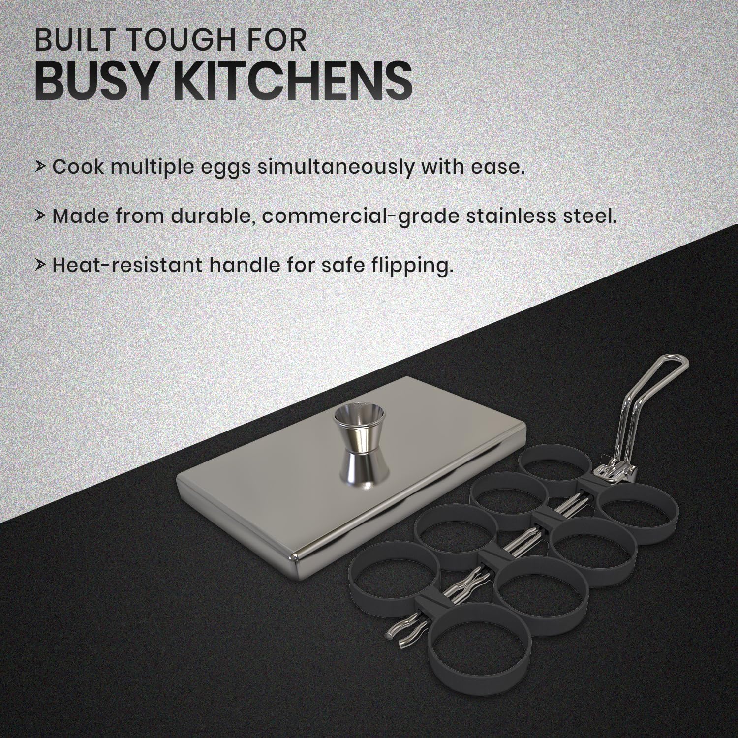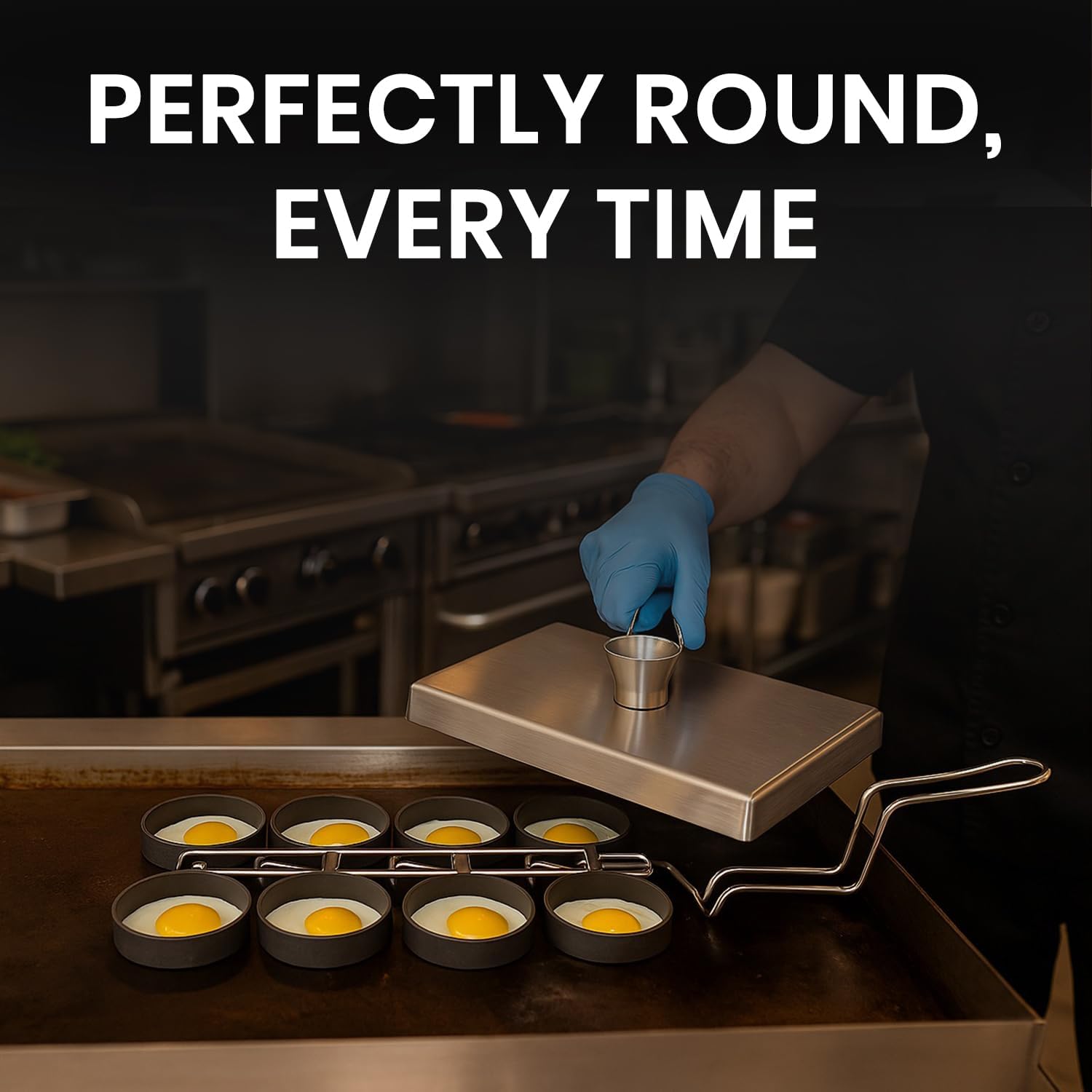 Rattleware Stainless Steel Egg Rings - Commercial-Grade, Even Cooking, Heat-Resistant Handle, Ideal for Frying Eggs - Durable & Trusted by Professional Chefs Worldwide (8 Ring Set)