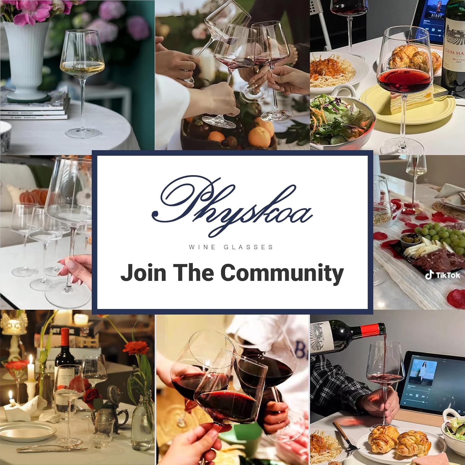 - Modern Square Shape Wine Glasses Set 4-Different shapes and curves of wine glasses have great differences and influences on the aroma and feeling of wine tasting. Physkoa long stem wine glasses with a supersize belly, 1.2mm smooth rim and extra-long stem, holds easily and gracefully,18OZ [[super big capacity]], perfect for aerating your favourite red wines, while tapered rim preserves wine's delicate and intoxicating flavour.