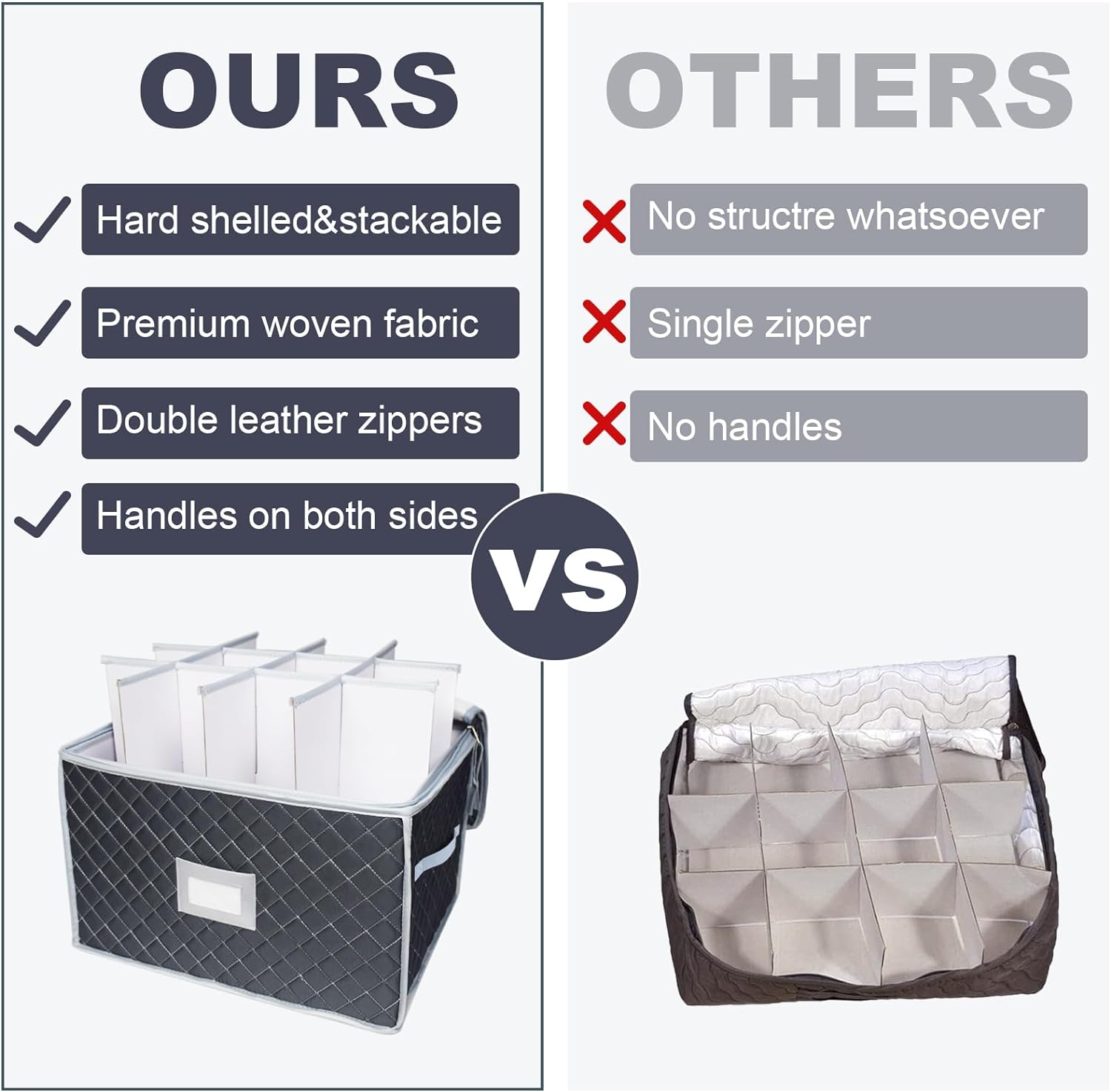 - [LARGE CAPACITY] Wine glass storage holds 24 of your favorite wine glasses or stemware up to 10 inch height.Each size:15.5" x 12.5"x 10".